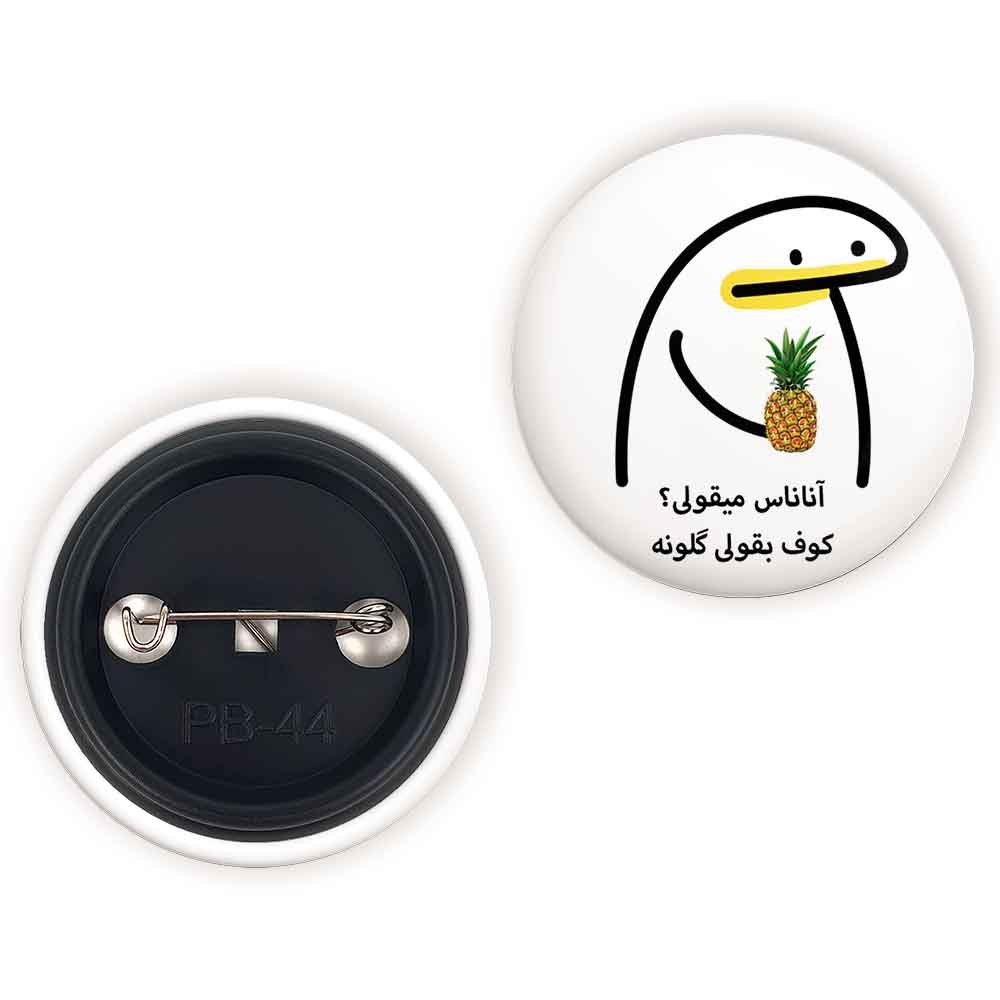 پیکسل 44 میلی متری آناناس میقولی؟ خندالو با روکش سلفون حرارتی مات مخملی ضدخش و قطعه پشتی رنگی تولید شده است. قطعات پلاستیکی پشت پیکسل با سوزن یک تکه ثابت و بدون لغزش و جا به جایی، ایستایی بسیار بهتری نسبت به پشتی فلزی پیکسل دارند که این مهم در تولید این محصول نیز رعایت شده است. چاپ پیکسل آناناس میقولی؟ نیز با دستگاه های استاندارد و با بهترین سطح کیفی صورت گرفته و طرح با شفافیتی مثال زدنی و با سلفونی بدون شکست نور بر روی پیکسل نقش بسته است. همچنین بسته بندی جذاب و مینیمال پیکسل آناناس میقولی؟ ، آنها را مناسب هدیه کرده است.