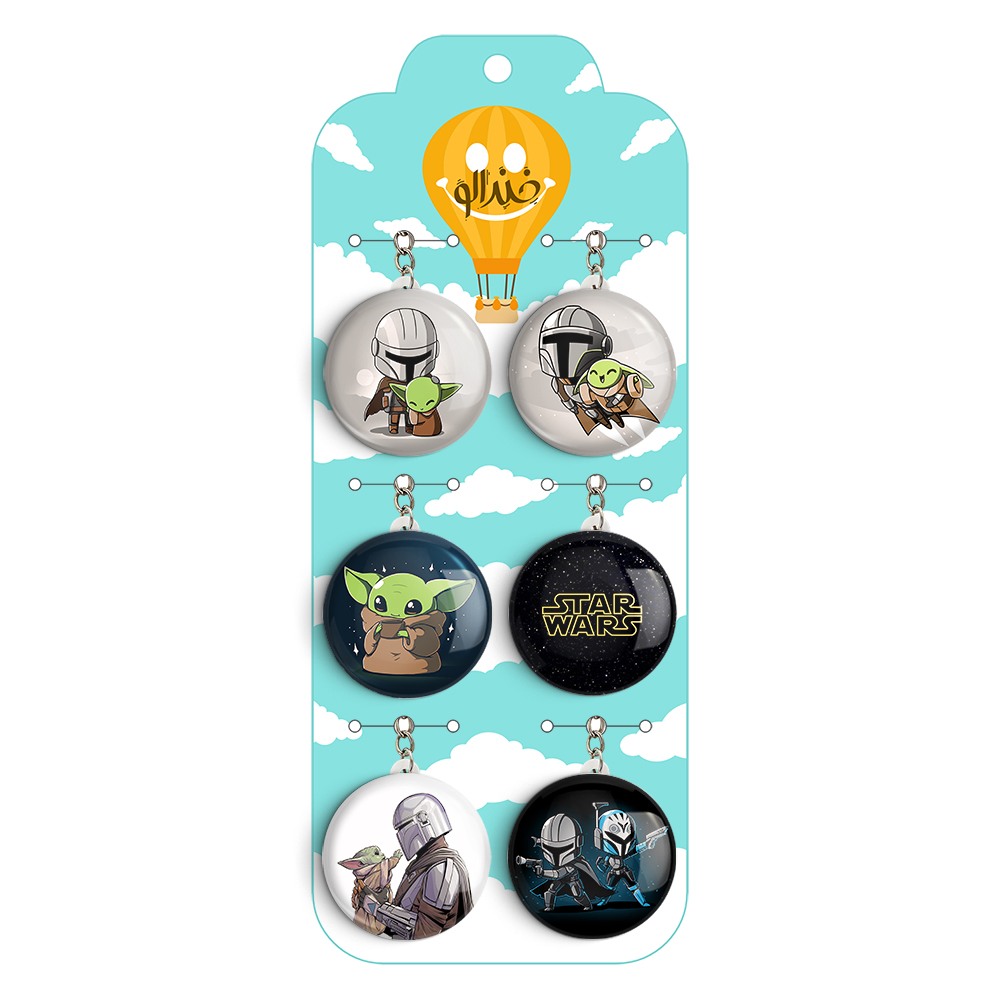 پک 6 عددی جاکلیدی خندالو طرح جنگ ستارگان (Star Wars) با استفاده از روکش سلفون حرارتی مات ضدخش تولید شده که خاصیت ضدخش بودن آن عمر مفید استفاده از جاکلیدی ها را افزایش میدهد. چاپ جاکلیدی ها با دستگاه های استاندارد و با بهترین سطح کیفیت صورت گرفته و طرح با شفافیتی مثال زدنی و با سلفون چسبی تولید شده است که باعث شده محصول نهایی بدون شکست نور دیده شود. همچنین بسته بندی جذاب و مینیمال جاکلیدی ها، آنها را محصولی مناسب هدیه کرده است. زنجیر و حلقه بکار برده شده در جاکلیدی خندالو از نوع حلقه درجه یک و ضخیم و محکم بوده و حین استفاده آسیب نمی بیند. قطعی پشتی جاکلیدی از جنس ABS شفاف سفید رنگ تولید شده که در مقابل خط و خش مقاوم بوده و به هیچ عنوان دچار شکستگی نخواهد شد.