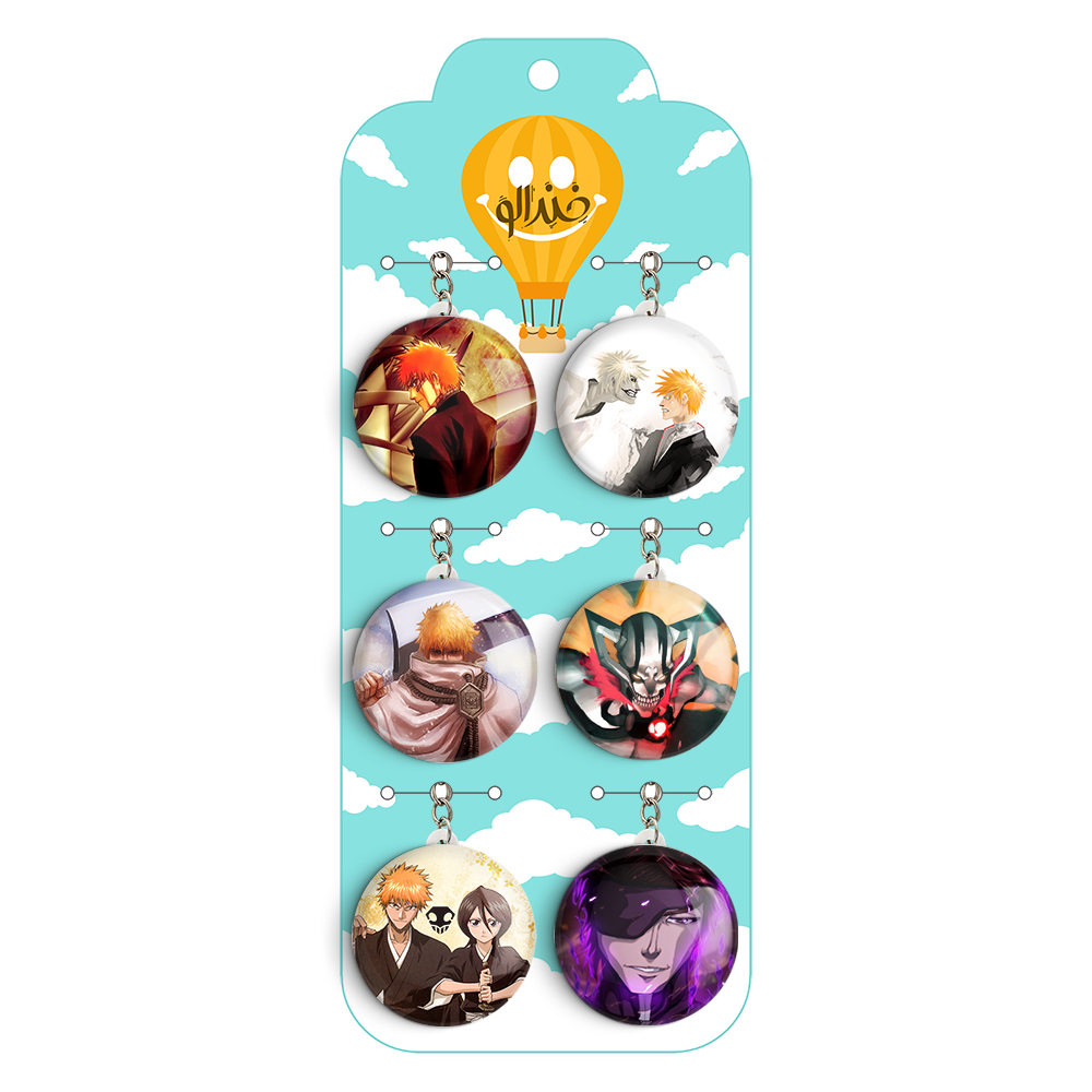 پک 6 عددی جاکلیدی خندالو طرح انیمه بلیچ (Bleach) با استفاده از روکش سلفون حرارتی مات ضدخش تولید شده که خاصیت ضدخش بودن آن عمر مفید استفاده از جاکلیدی ها را افزایش میدهد. چاپ جاکلیدی ها با دستگاه های استاندارد و با بهترین سطح کیفیت صورت گرفته و طرح با شفافیتی مثال زدنی و با سلفون چسبی تولید شده است که باعث شده محصول نهایی بدون شکست نور دیده شود. همچنین بسته بندی جذاب و مینیمال جاکلیدی ها، آنها را محصولی مناسب هدیه کرده است. زنجیر و حلقه بکار برده شده در جاکلیدی خندالو از نوع حلقه درجه یک و ضخیم و محکم بوده و حین استفاده آسیب نمی بیند. قطعی پشتی جاکلیدی از جنس ABS شفاف سفید رنگ تولید شده که در مقابل خط و خش مقاوم بوده و به هیچ عنوان دچار شکستگی نخواهد شد.