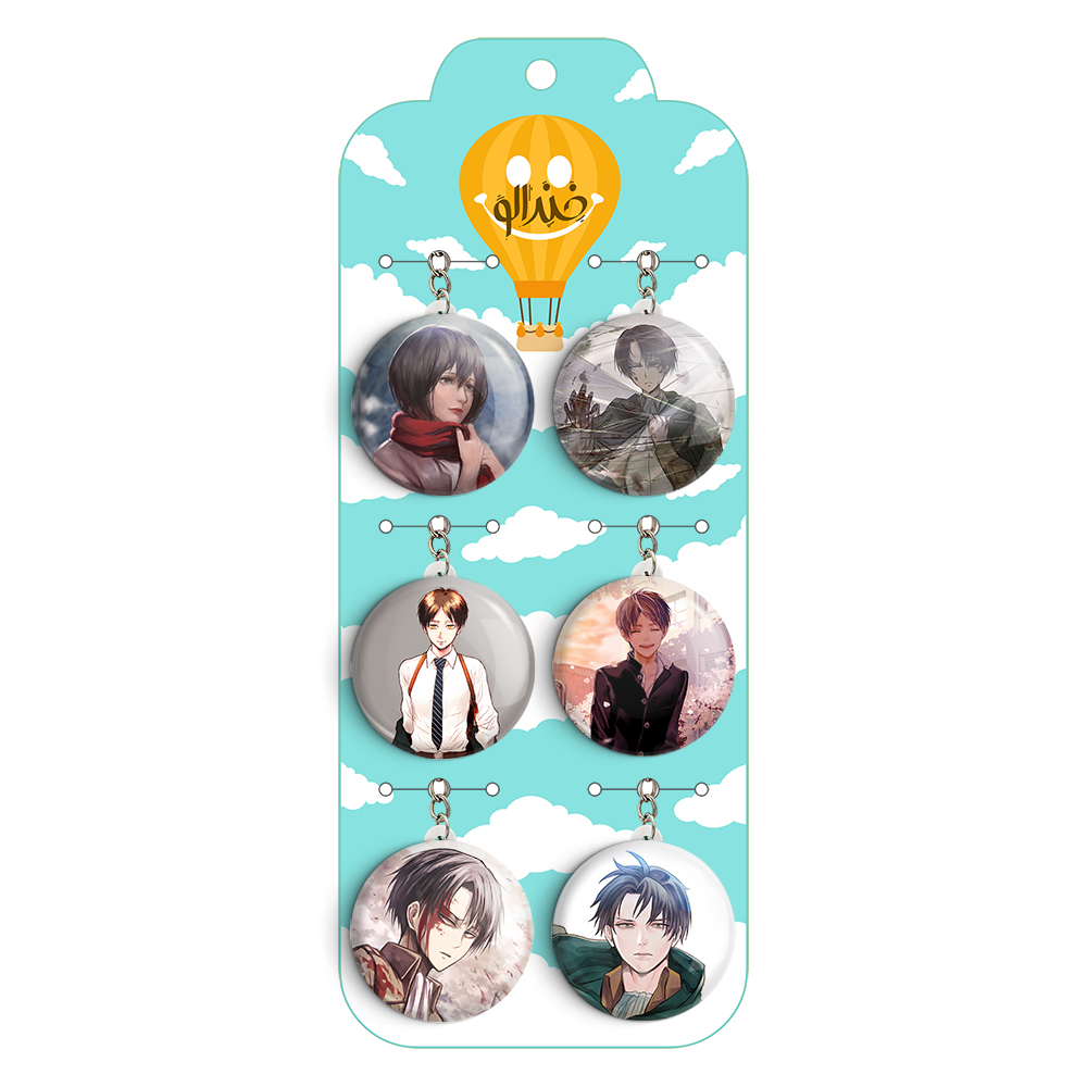 پک 6 عددی جاکلیدی خندالو طرح انیمه اتک آن تایتان (Attack on Titan) با استفاده از روکش سلفون حرارتی مات ضدخش تولید شده که خاصیت ضدخش بودن آن عمر مفید استفاده از جاکلیدی ها را افزایش میدهد. چاپ جاکلیدی ها با دستگاه های استاندارد و با بهترین سطح کیفیت صورت گرفته و طرح با شفافیتی مثال زدنی و با سلفون چسبی تولید شده است که باعث شده محصول نهایی بدون شکست نور دیده شود.