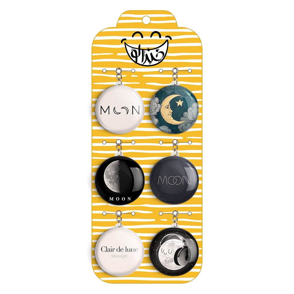 پک 6 عددی جاکلیدی خندالو طرح ماه (Moon) با استفاده از روکش سلفون حرارتی مات ضدخش تولید شده که خاصیت ضدخش بودن آن عمر مفید استفاده از جاکلیدی ها را افزایش میدهد. چاپ جاکلیدی ها با دستگاه های استاندارد و با بهترین سطح کیفیت صورت گرفته و طرح با شفافیتی مثال زدنی و با سلفون چسبی تولید شده است که باعث شده محصول نهایی بدون شکست نور دیده شود. همچنین بسته بندی جذاب و مینیمال جاکلیدی ها، آنها را محصولی مناسب هدیه کرده است. زنجیر و حلقه بکار برده شده در جاکلیدی خندالو از نوع حلقه درجه یک و ضخیم و محکم بوده و حین استفاده آسیب نمی بیند. قطعی پشتی جاکلیدی از جنس ABS شفاف سفید رنگ تولید شده که در مقابل خط و خش مقاوم بوده و به هیچ عنوان دچار شکستگی نخواهد شد.