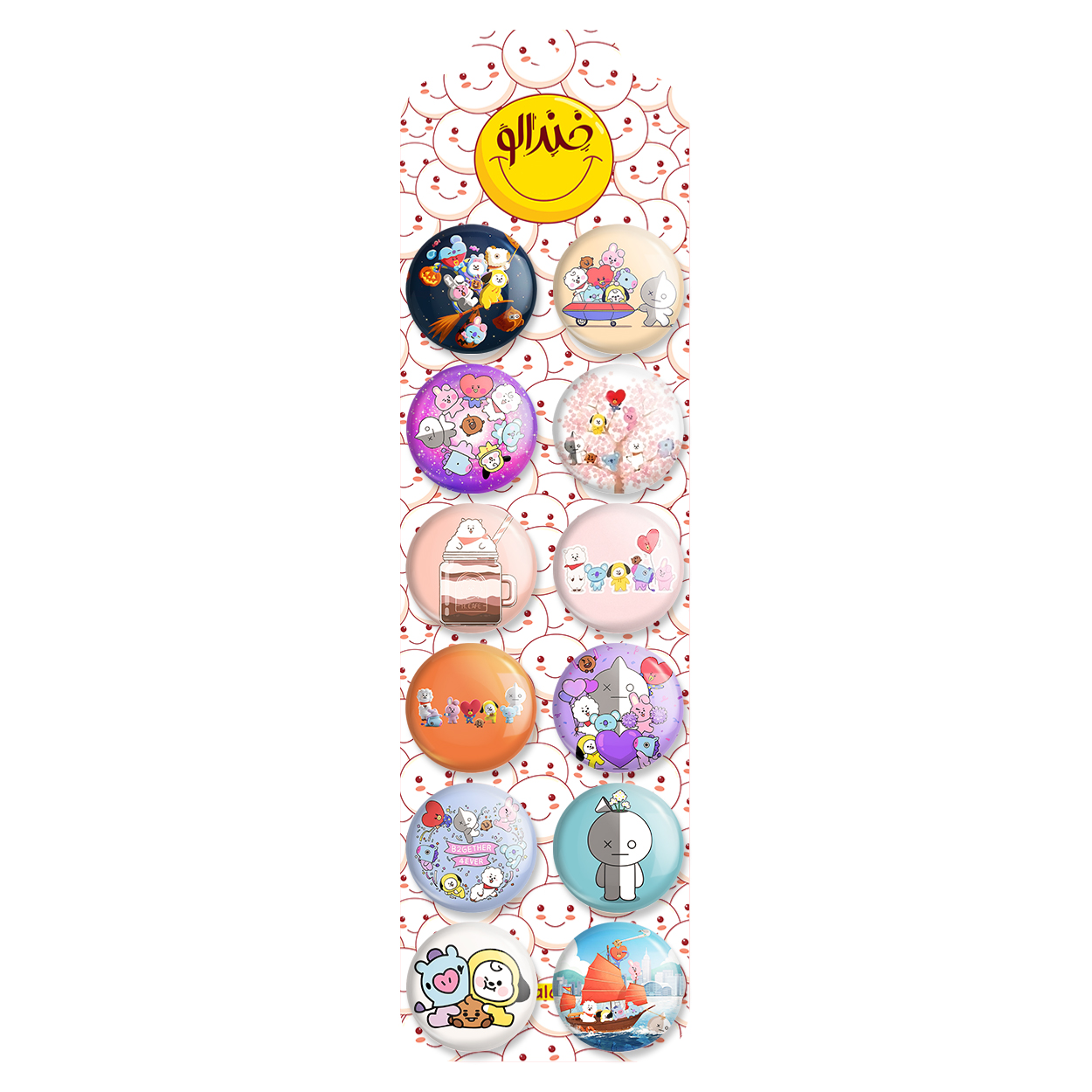 پک 12 عددی پیکسل خندالو طرح BT21 با روکش سلفون حرارتی براق ضدخش و قطعه پشتی رنگی تولید شده است. قطعات پشتی از میان 6 رنگ سفید، مشکی، صورتی، زرد، آبی و قرمز که با توجه به نوع و رنگبندی طرح روی پیکسل انتخاب شده اند تولید می شود و در هر بسته بندی مطابق عکس محصول می باشد. قطعات پلاستیکی پشت پیکسل با سوزن یک تکه ثابت و بدون لغزش و جا به جایی، ایستایی بسیار بهتری نسبت به پشتی فلزی پیکسل دارند که این مهم در تولید این محصول نیز رعایت شده است.