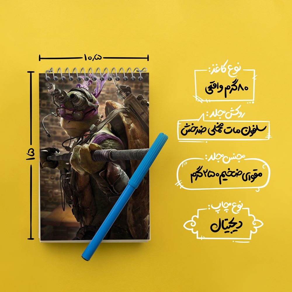 برند خندالو در زمینه تولید انواع دفاتر فانتزی و تحصیلی فعالیت میکند که به دلیل جذابیت ظاهری و طرح های متنوع طرفداران زیادی دارد. دفتر یادداشت خندالو طرح داناتلو لاکپشت های نینجا محصولی مناسب برای همه عاشقان لوازم التحریر است و همچنین همه کسانی که بنا به موقعیت تحصیل یا شغلشان با دفتر و نوشت افزار زیاد سر و کار دارند. در تولید دفتر یادداشت خندالو طرح داناتلو لاکپشت های نینجا از نوع صحافی فنر مارپیچ استفاده شده که در این نوع صحافی برگهها به راحتی چرخیده و یا بیرون آورده می شوند. دفتر های خندالو دارای جلد انعطاف پذیر از جنس مقوای گلاسه 250 گرم با روکش سلفون مات مخملی است که به شما امکان میدهد از دفتر خود بدون اینکه نگرانی از شکستن یا خراب شدن جلد را داشته باشید استفاده کنید و همچنین در این دفاتر از کاغذ 80 گرم با کیفیت استفاده شده که باعث میشود هنگام نوشتن به خوبی جوهر قلم بر روی صفحه نشسته و از خط خوردگیها جلوگیری کند. دفتر یادداشت خندالو با جنس و دوام مناسب، برگه های کاملاً سفید و خطوط طوسی دقیق را داراست که انسان را به نوشتن منظم و زیبا ترغیب میکند. طراحی کاملاً مناسب این دفاتر، به همراه کیفیت بالا، از آن یک محصول مورد علاقه و قابل اعتماد برای همه مقاطع تحصیلی میسازد. دفتر یادداشت خندالو طرح داناتلو لاکپشت های نینجا انتخابی هوشمندانه و مناسب برای افرادی است که به دنبال دفتری با کیفیت و کاربرد عالی هستند. این دفتر، همراه خوبی برای شما در تمام مراحل تحصیل و کار خواهد بود و تجربهای لذتبخش از نوشتن و آموختن را به شما هدیه میدهد.