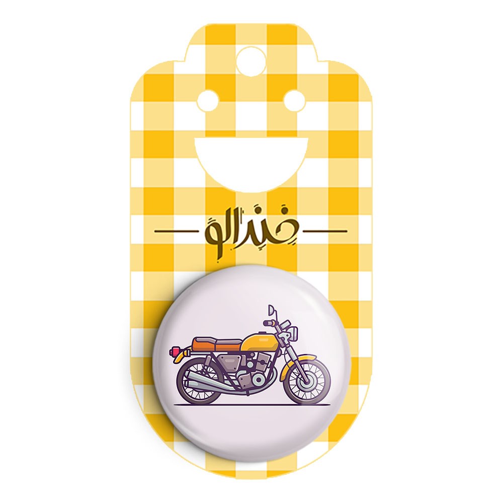 پیکسل 44 میلی متری موتورسیکلت خندالو با روکش سلفون حرارتی مات مخملی ضدخش و قطعه پشتی رنگی تولید شده است.پلاستیکی پشت پیکسل با سوزن یک تکه ثابت و بدون لغزش و جا به جایی، ایستایی بسیار بهتری نسبت به پشتی فلزی پیکسل دارند که این مهم در تولید این محصول نیز رعایت شده است.