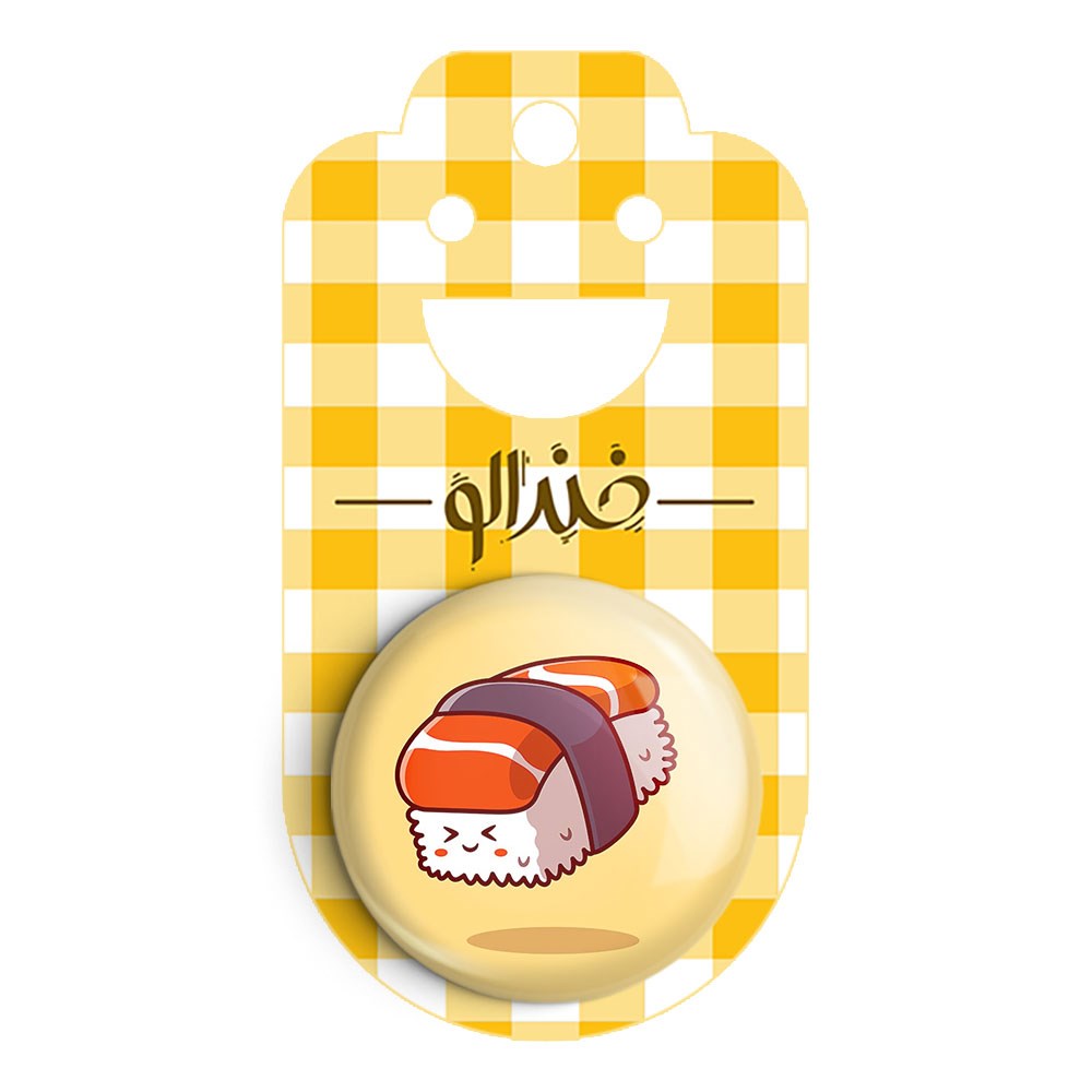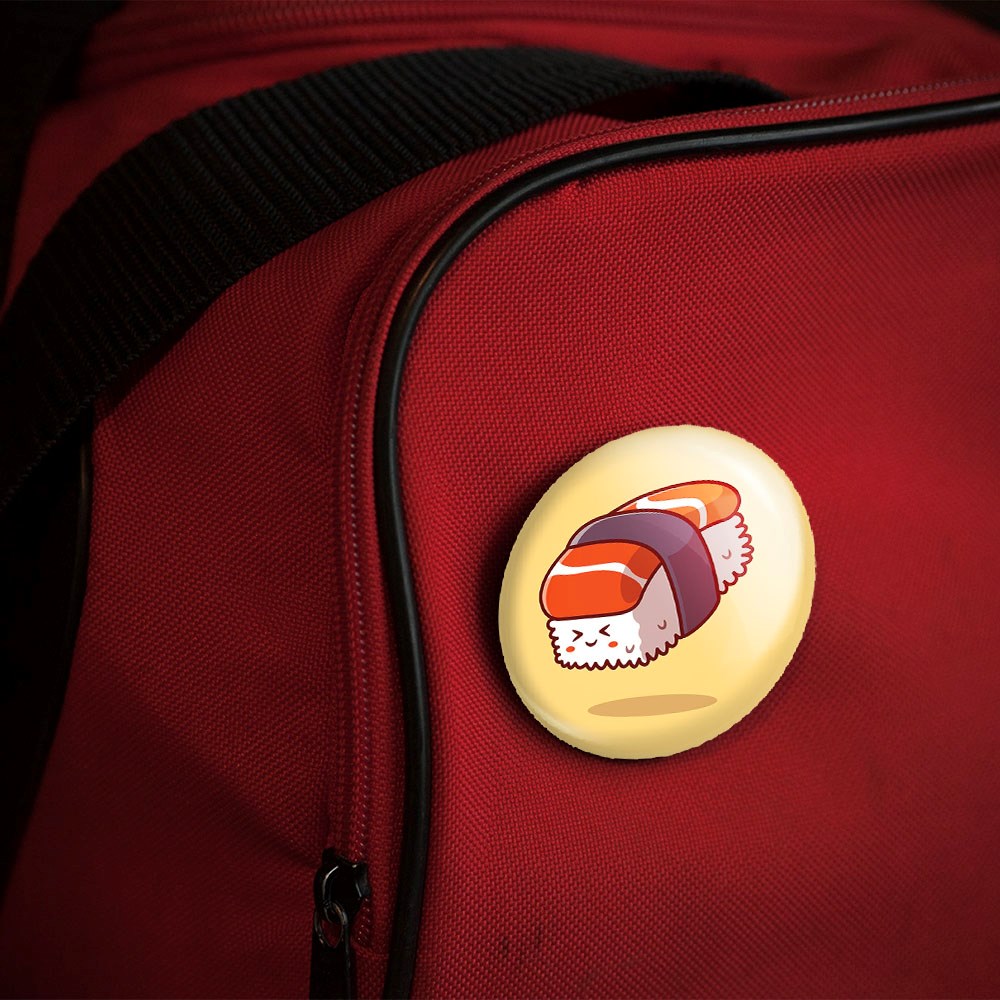 پیکسل 44 میلی متری سوشی خندالو با روکش سلفون حرارتی مات مخملی ضدخش و قطعه پشتی رنگی تولید شده است.پلاستیکی پشت پیکسل با سوزن یک تکه ثابت و بدون لغزش و جا به جایی، ایستایی بسیار بهتری نسبت به پشتی فلزی پیکسل دارند که این مهم در تولید این محصول نیز رعایت شده است.