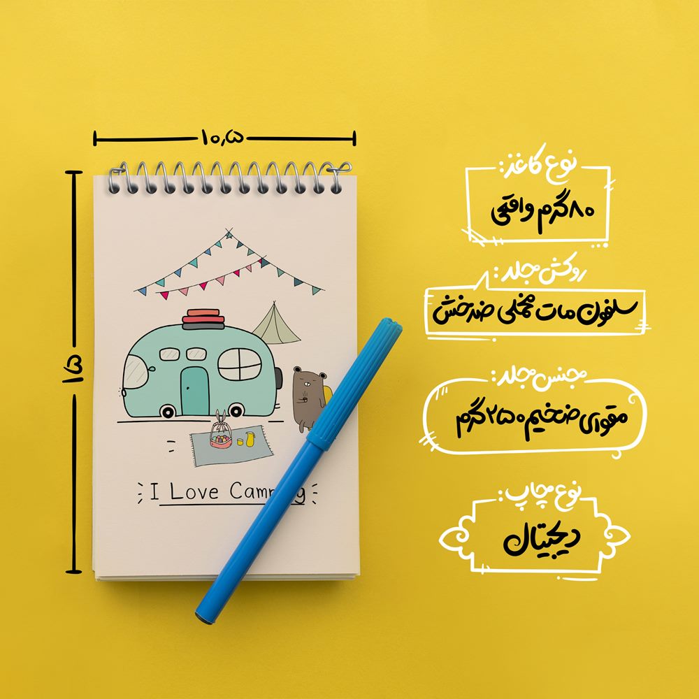 برند خندالو در زمینه تولید انواع دفاتر فانتزی و تحصیلی فعالیت میکند که به دلیل جذابیت ظاهری و طرح های متنوع طرفداران زیادی دارد. دفتر یادداشت خندالو طرح کمپینگ محصولی مناسب برای همه عاشقان لوازم التحریر است و همچنین همه کسانی که بنا به موقعیت تحصیل یا شغلشان با دفتر و نوشت افزار زیاد سر و کار دارند. در تولید دفتر یادداشت خندالو طرح کمپینگ از نوع صحافی فنر مارپیچ استفاده شده که در این نوع صحافی برگهها به راحتی چرخیده و یا بیرون آورده می شوند. دفتر های خندالو دارای جلد انعطاف پذیر از جنس مقوای گلاسه 250 گرم با روکش سلفون مات مخملی است که به شما امکان میدهد از دفتر خود بدون اینکه نگرانی از شکستن یا خراب شدن جلد را داشته باشید استفاده کنید و همچنین در این دفاتر از کاغذ 80 گرم با کیفیت استفاده شده که باعث میشود هنگام نوشتن به خوبی جوهر قلم بر روی صفحه نشسته و از خط خوردگیها جلوگیری کند. دفتر یادداشت خندالو با جنس و دوام مناسب، برگه های کاملاً سفید و خطوط طوسی دقیق را داراست که انسان را به نوشتن منظم و زیبا ترغیب میکند. طراحی کاملاً مناسب این دفاتر، به همراه کیفیت بالا، از آن یک محصول مورد علاقه و قابل اعتماد برای همه مقاطع تحصیلی میسازد. دفتر یادداشت خندالو طرح کمپینگ انتخابی هوشمندانه و مناسب برای افرادی است که به دنبال دفتری با کیفیت و کاربرد عالی هستند. این دفتر، همراه خوبی برای شما در تمام مراحل تحصیل و کار خواهد بود و تجربهای لذتبخش از نوشتن و آموختن را به شما هدیه میدهد.