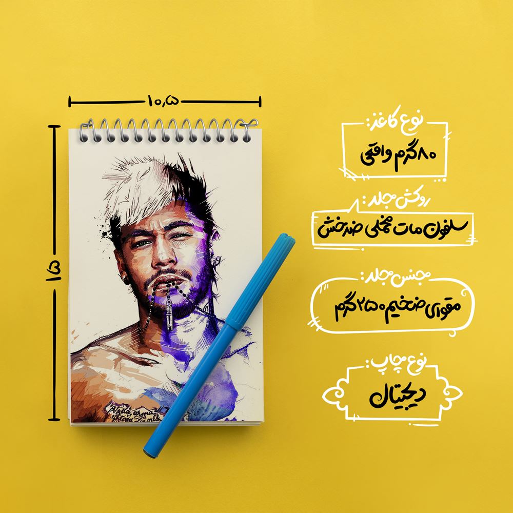 برند خندالو در زمینه تولید انواع دفاتر فانتزی و تحصیلی فعالیت میکند که به دلیل جذابیت ظاهری و طرح های متنوع طرفداران زیادی دارد. دفتر یادداشت خندالو طرح نیمار Neymar محصولی مناسب برای همه عاشقان لوازم التحریر است و همچنین همه کسانی که بنا به موقعیت تحصیل یا شغلشان با دفتر و نوشت افزار زیاد سر و کار دارند. در تولید دفتر یادداشت خندالو طرح نیمار Neymar از نوع صحافی فنر مارپیچ استفاده شده که در این نوع صحافی برگه‌ها به راحتی چرخیده و یا بیرون آورده می شوند.