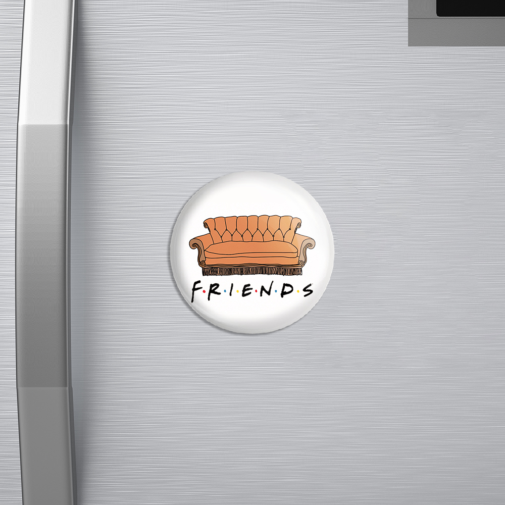 مگنت فرندز Friends خندالو با روکش سلفون مات مخملی ضدخش و قطعه پشتی فلزی تولید شده است که آهنربای اتمی بکار برده شده در محصول، بصورت مخفی تعبیه شده ودیده نمی شود. ضمن اینکه گیرایی بسیار بالایی داشته و به هیچ عنوان از روی یخچال نمی افتد.