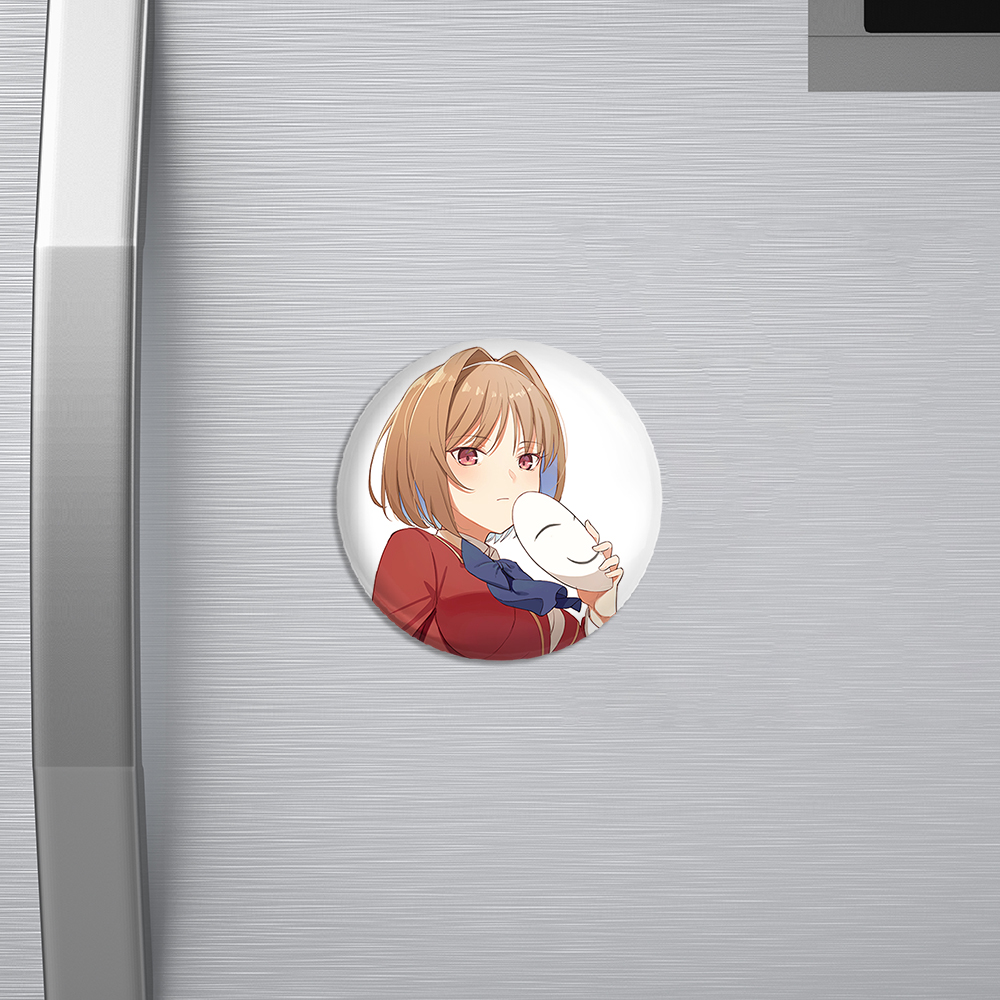 مگنت کوشیدا انیمه کلاس نخبگان خندالو با روکش سلفون مات مخملی ضدخش و قطعه پشتی فلزی تولید شده است که آهنربای اتمی بکار برده شده در محصول، بصورت مخفی تعبیه شده ودیده نمی شود. ضمن اینکه گیرایی بسیار بالایی داشته و به هیچ عنوان از روی یخچال نمی افتد.