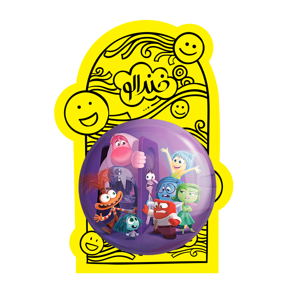 پیکسل بزرگ اینساید اوت (Inside Out) خندالو با روکش سلفون حرارتی مات مخملی ضدخش و قطعه پشتی فلزی تولید می شود. قطعات پشت پیکسل های خندالو با سوزن یک تکه ثابت و بدون لغزش و جا به جایی، ایستایی بسیار خوبی دارند که این مهم در تولید پیکسل های 58 میلیمتری نیز رعایت شده است.