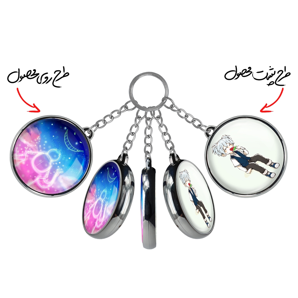 جاکلیدی دوطرفه کورو سنسی انیمه کلاس آدمکشی خندالو محصولی کاربردی و جدید است که در هر دو سمت محصول، تصویری متفاوت اما از یک موضوع چاپ شده و تفاوت اصلی آن با جاکلیدی های یک طرفه در همین است که هر دو سمت پشت و روی جاکلیدی، طرحی دیدنی و جذاب دارد. همچنین رینگ بکار برده شده برای دور طرح ها آبکاری کروم درجه یک و رنگ ثابت است و برخلاف سایر محصولات مشابه، از رنگ های متفرقه و یا سفید استفاده نشده، که این مهم، زیبایی محصول نهایی را چند برابر کرده است. جاکلیدی های دوطرفه کورو سنسی انیمه کلاس آدمکشی با استفاده از روکش سلفون براق ضدخش تولید شده که خاصیت ضدخش بودن آن عمر مفید استفاده از جاکلیدی ها را افزایش میدهد. چاپ جاکلیدی ها با دستگاه های استاندارد و با بهترین سطح کیفیت صورت گرفته و طرح با شفافیتی مثال زدنی و با سلفون چسبی تولید شده است که باعث شده محصول نهایی بدون شکست نور دیده شود. همچنین بسته بندی جذاب و مینیمال جاکلیدی دوطرفه کورو سنسی انیمه کلاس آدمکشی، آنها را محصولی مناسب هدیه کرده است. زنجیر و حلقه بکار برده شده در جاکلیدی خندالو از نوع حلقه ضخیم و محکم بوده و حین استفاده آسیب نمی بیند.