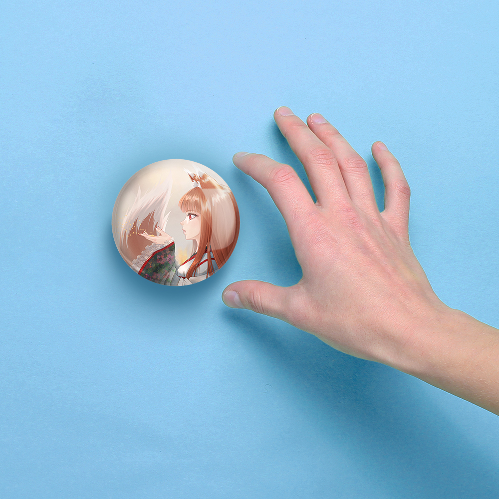آینه های جیبی هولو انیمه ادویه و گرگ خندالو دایره ای به قطر 7.5 سانتی متر می باشد که نه خیلی بزرگ و غیر قابل استفاده در کیف آرایشی ست و نه خیلی کوچک که تصویر خاصی در آن مشاهده نشود. سایزی استاندارد و کارآمد دارد و مناسب قرار گیری در کیف لوازم آرایش و کیف های کوچک دستی نیز هست.