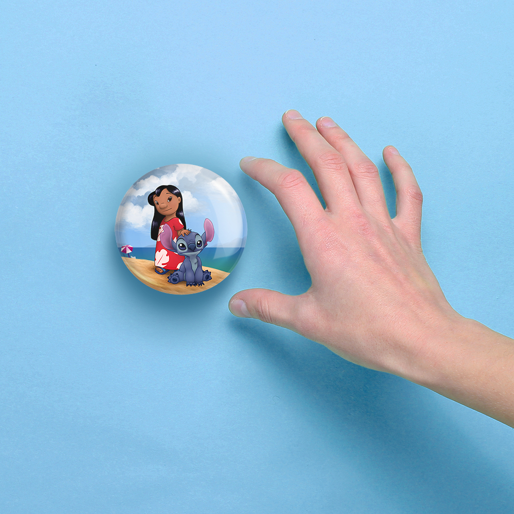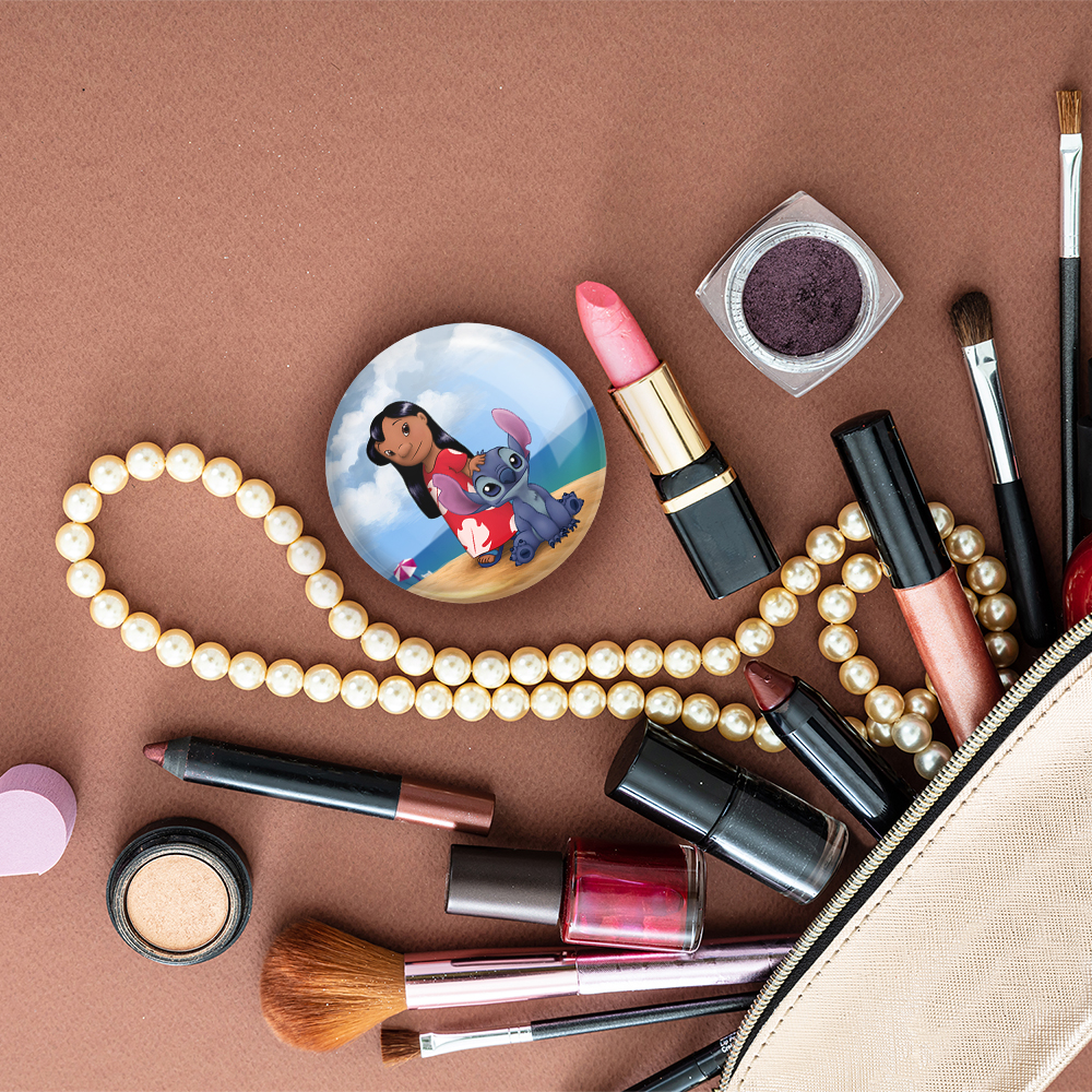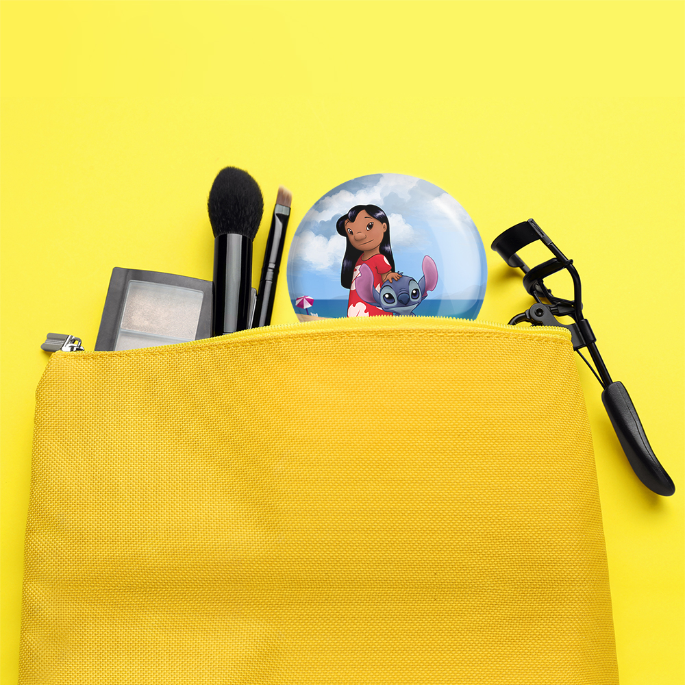 آینه های جیبی لیلو و استیچ خندالو دایره ای به قطر 7.5 سانتی متر می باشد که نه خیلی بزرگ و غیر قابل استفاده در کیف آرایشی ست و نه خیلی کوچک که تصویر خاصی در آن مشاهده نشود. سایزی استاندارد و کارآمد دارد و مناسب قرار گیری در کیف لوازم آرایش و کیف های کوچک دستی نیز هست.