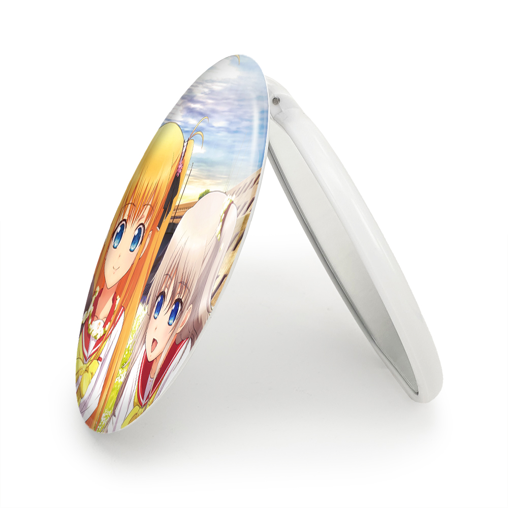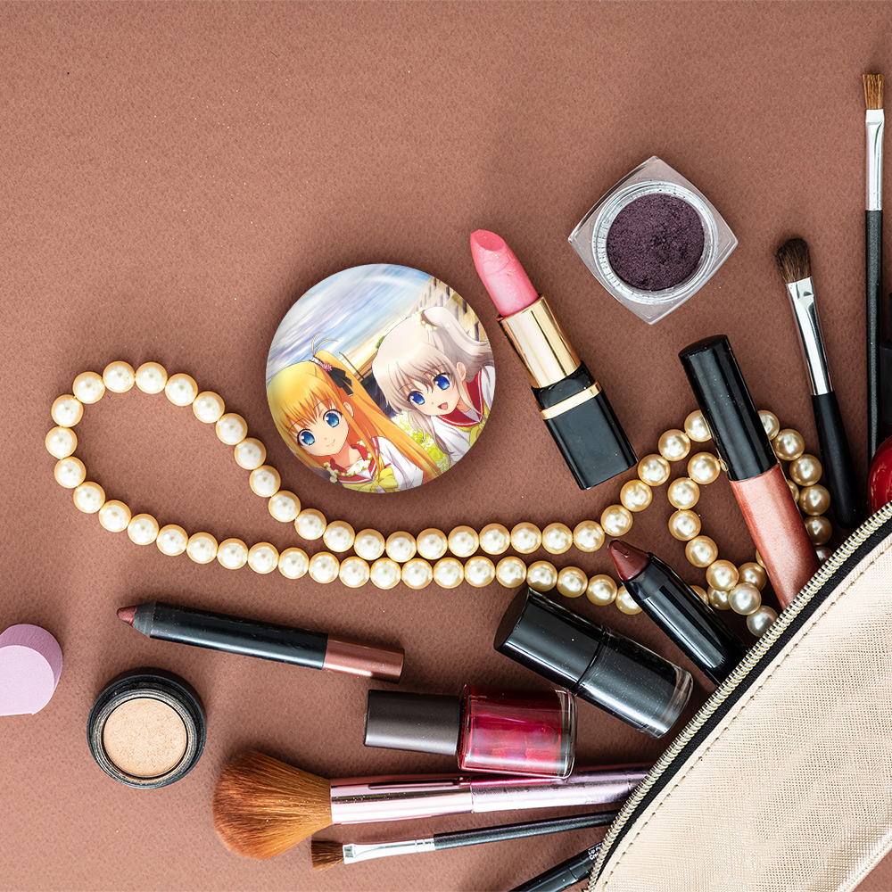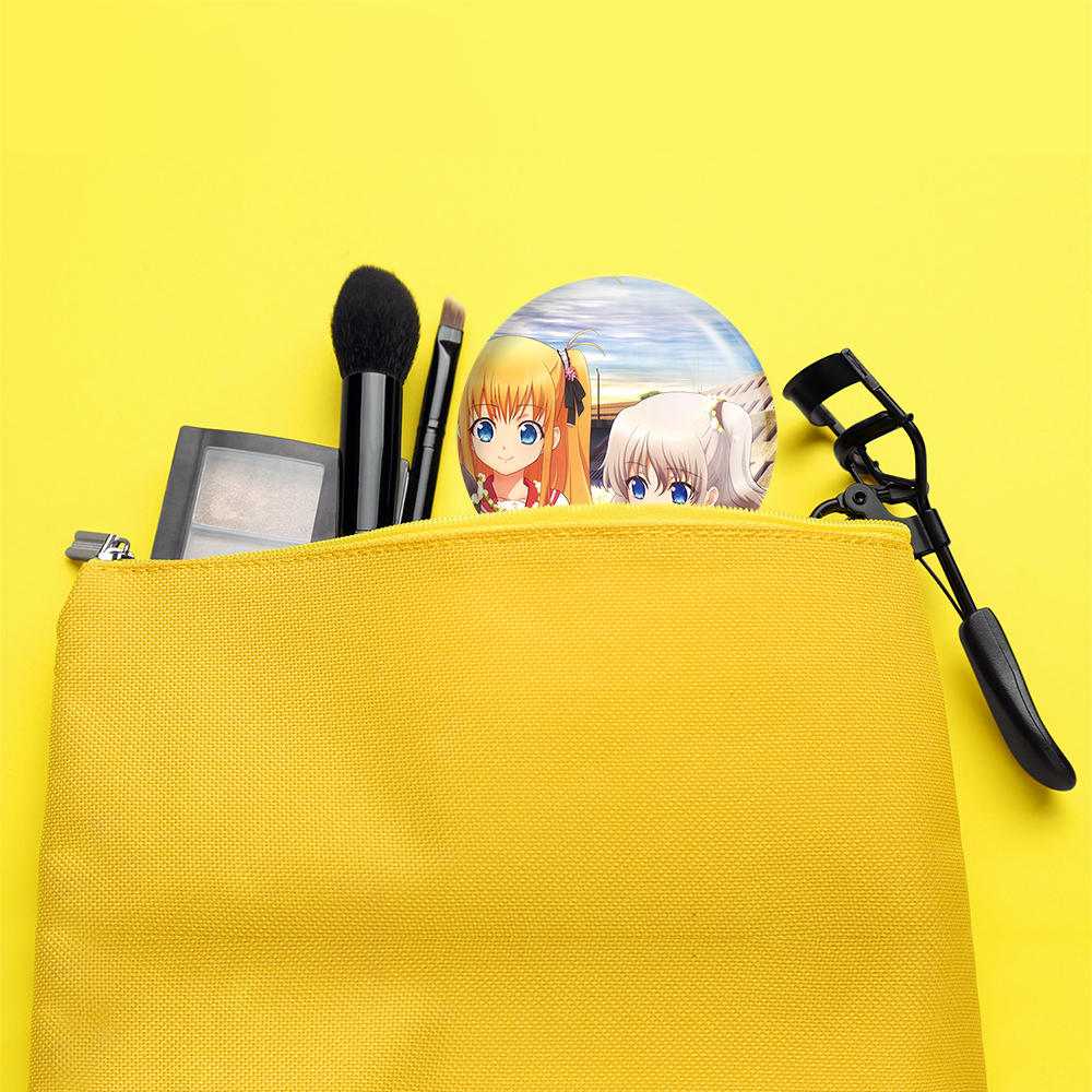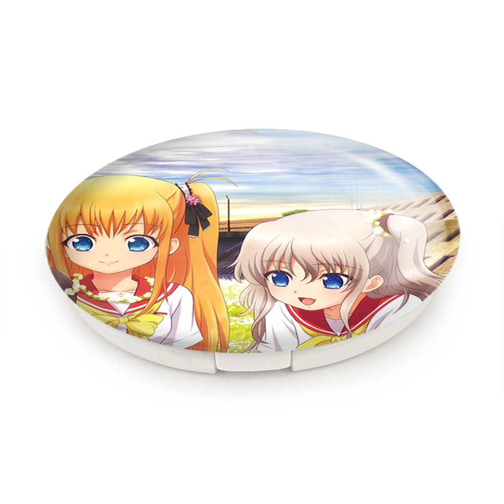آینه های تاشو آیومی، توموری و یوسا انیمه شارلوت خندالو، از جنس پلاستیک فشرده ABS تولید شده و به رنگ سفید می باشد. یکی از آینه ها ابعاد واقعی را نشان داده و دیگری با قابلیت بزرگنمایی، جزئیات را بهتر نمایش می دهد. ابعاد هر یک از آینه ها، دایره ای به قطر 7.5 سانت می باشد که نه خیلی بزرگ و غیر قابل استفاده در کیف آرایشی ست و نه خیلی کوچک که تصویر خاصی در آن مشاهده نشود. آینه تاشو آیومی، توموری و یوسا انیمه شارلوت سایزی استاندارد و کارآمد دارد و در هر کیفی جا میگیرد. چاپ طرح بوسیله چاپگرهای دیجیتال شش رنگ با شفافیت و کیفیتی مثال زدنی بر روی یک وجه از بدنه ی آینه انجام گرفته و با روکش لمینت حرارتی پوشیده شده که در مقابل آسیب و خط و خش مقاوم بوده و کیفیت بالایی دارد. درب آینه بوسیله قفل بدنه ی آن، باز نمی ماند و کاملا بسته می شود و مناسب قرار گیری در کیف لوازم آرایش و کیف های کوچک دستی نیز هست. آینه های تاشو آیومی، توموری و یوسا انیمه شارلوت خندالو با تنوع طرحی بسیار بالا، سلیقه هر نوع مخاطبی را تامین میکند.