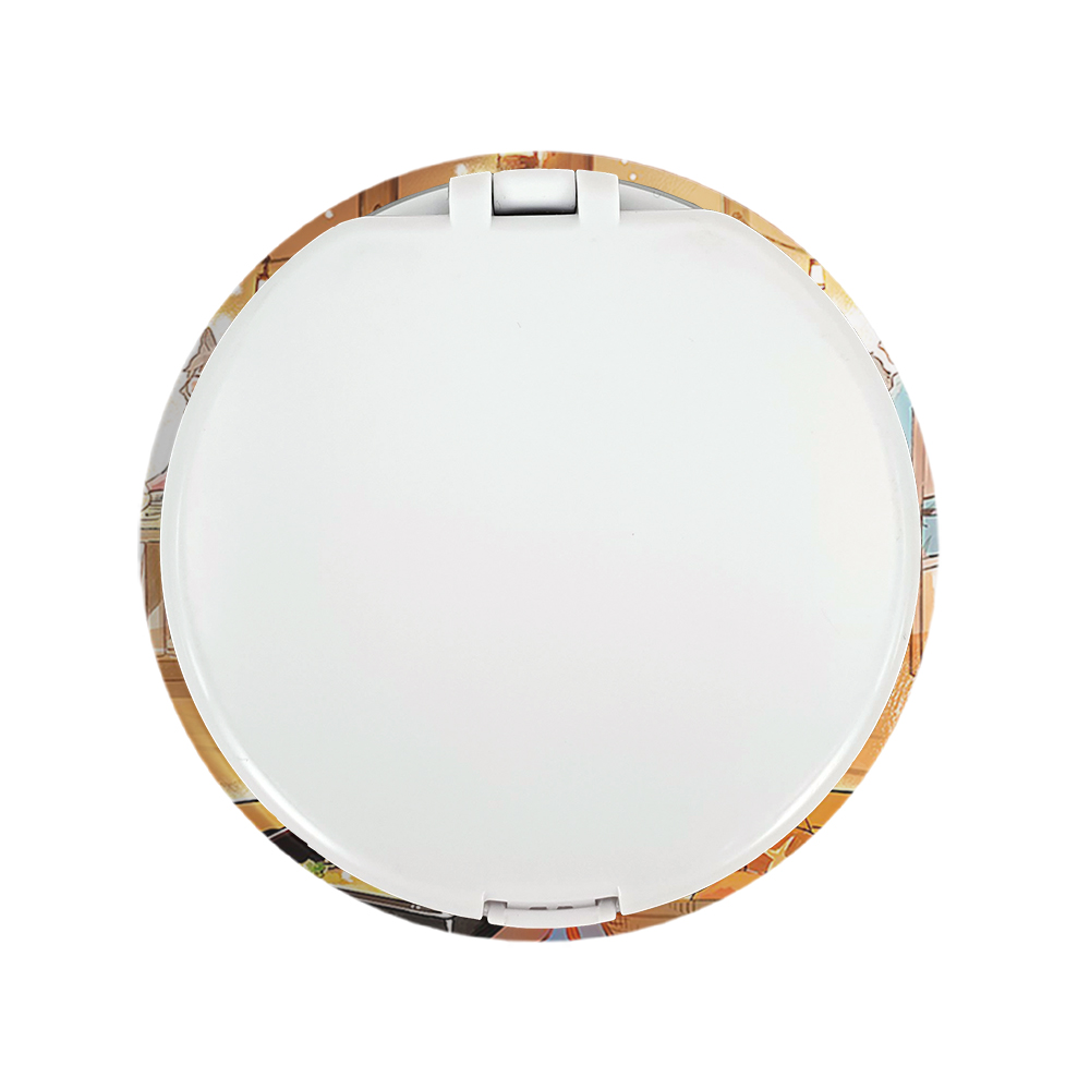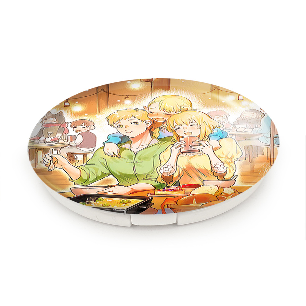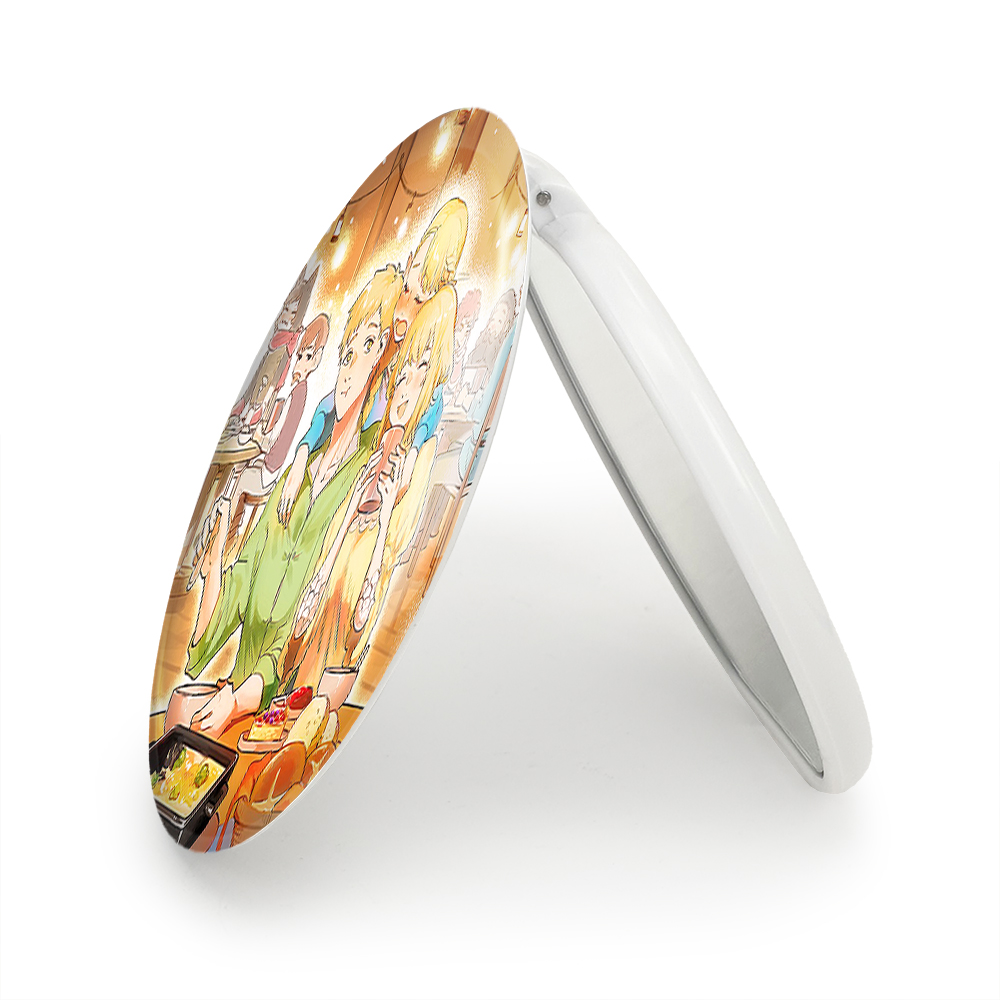 آینه های تاشو مارسیل و سنشی انیمه خوشمزه در سیاه چال خندالو، از جنس پلاستیک فشرده ABS تولید شده و به رنگ سفید می باشد. یکی از آینه ها ابعاد واقعی را نشان داده و دیگری با قابلیت بزرگنمایی، جزئیات را بهتر نمایش می دهد. ابعاد هر یک از آینه ها، دایره ای به قطر 7.5 سانت می باشد که نه خیلی بزرگ و غیر قابل استفاده در کیف آرایشی ست و نه خیلی کوچک که تصویر خاصی در آن مشاهده نشود. آینه تاشو مارسیل و سنشی انیمه خوشمزه در سیاه چال سایزی استاندارد و کارآمد دارد و در هر کیفی جا میگیرد. چاپ طرح بوسیله چاپگرهای دیجیتال شش رنگ با شفافیت و کیفیتی مثال زدنی بر روی یک وجه از بدنه ی آینه انجام گرفته و با روکش لمینت حرارتی پوشیده شده که در مقابل آسیب و خط و خش مقاوم بوده و کیفیت بالایی دارد. درب آینه بوسیله قفل بدنه ی آن، باز نمی ماند و کاملا بسته می شود و مناسب قرار گیری در کیف لوازم آرایش و کیف های کوچک دستی نیز هست. آینه های تاشو مارسیل و سنشی انیمه خوشمزه در سیاه چال خندالو با تنوع طرحی بسیار بالا، سلیقه هر نوع مخاطبی را تامین میکند.