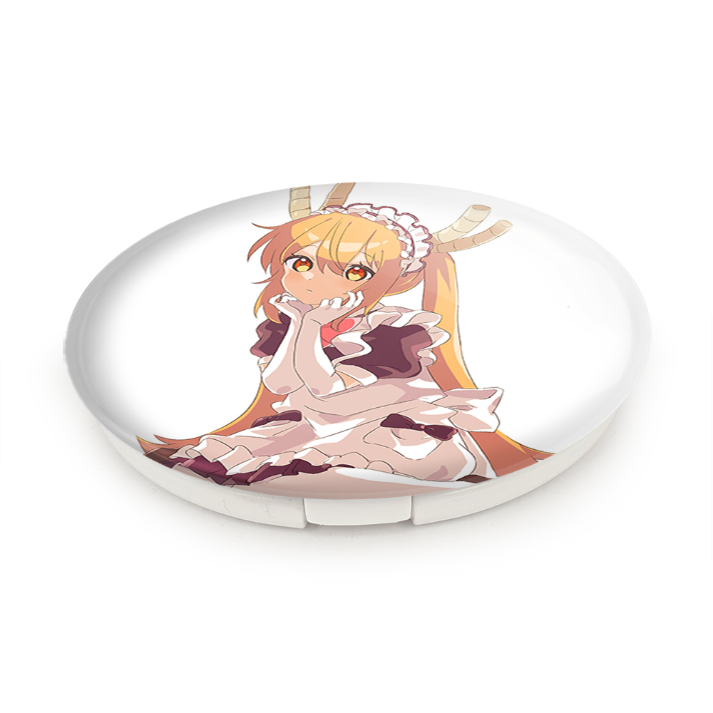 آینه های تاشو توهرو انیمه اژدهای خدمتکار کوبایاشی خندالو، از جنس پلاستیک فشرده ABS تولید شده و به رنگ سفید می باشد. یکی از آینه ها ابعاد واقعی را نشان داده و دیگری با قابلیت بزرگنمایی، جزئیات را بهتر نمایش می دهد. ابعاد هر یک از آینه ها، دایره ای به قطر 7.5 سانت می باشد که نه خیلی بزرگ و غیر قابل استفاده در کیف آرایشی ست و نه خیلی کوچک که تصویر خاصی در آن مشاهده نشود. آینه تاشو توهرو انیمه اژدهای خدمتکار کوبایاشی سایزی استاندارد و کارآمد دارد و در هر کیفی جا میگیرد. چاپ طرح بوسیله چاپگرهای دیجیتال شش رنگ با شفافیت و کیفیتی مثال زدنی بر روی یک وجه از بدنه ی آینه انجام گرفته و با روکش لمینت حرارتی پوشیده شده که در مقابل آسیب و خط و خش مقاوم بوده و کیفیت بالایی دارد. درب آینه بوسیله قفل بدنه ی آن، باز نمی ماند و کاملا بسته می شود و مناسب قرار گیری در کیف لوازم آرایش و کیف های کوچک دستی نیز هست. آینه های تاشو توهرو انیمه اژدهای خدمتکار کوبایاشی خندالو با تنوع طرحی بسیار بالا، سلیقه هر نوع مخاطبی را تامین میکند.