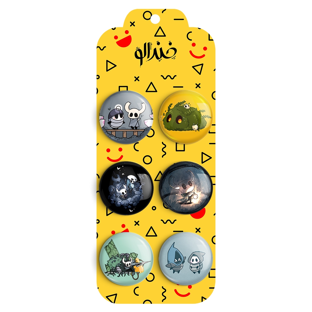 مجموعه 6 عددی پیکسل خندالو طرح هالو نایت (Hollow Knight) با روکش سلفون حرارتی براق ضدخش و قطعه پشتی رنگی تولید شده است. قطعات پشتی از میان 6 رنگ سفید، مشکی، صورتی، زرد، آبی و قرمز که با توجه به نوع و رنگبندی طرح روی پیکسل انتخاب شده اند تولید می شود و در هر بسته بندی مطابق عکس محصول می باشد.