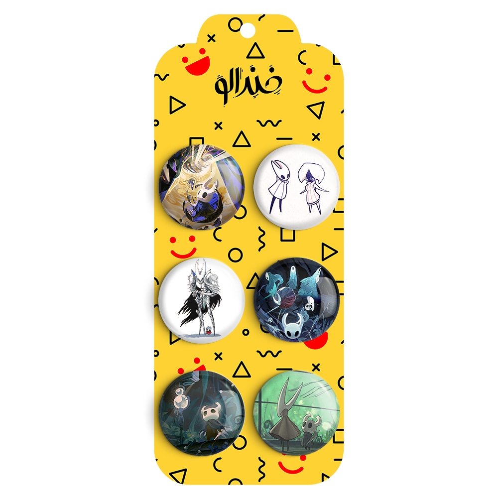 مجموعه 6 عددی پیکسل خندالو طرح هالو نایت (Hollow Knight) با روکش سلفون حرارتی براق ضدخش و قطعه پشتی رنگی تولید شده است. قطعات پشتی از میان 6 رنگ سفید، مشکی، صورتی، زرد، آبی و قرمز که با توجه به نوع و رنگبندی طرح روی پیکسل انتخاب شده اند تولید می شود و در هر بسته بندی مطابق عکس محصول می باشد.