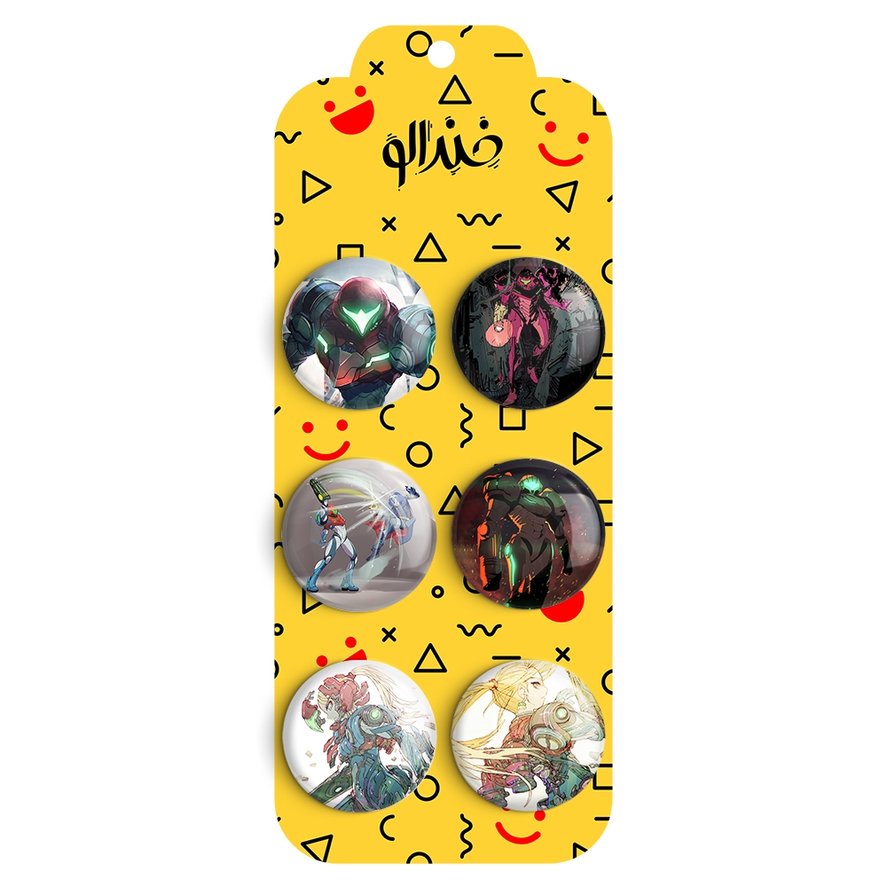 مجموعه 6 عددی پیکسل خندالو طرح متروید (Metroid) با روکش سلفون حرارتی براق ضدخش و قطعه پشتی رنگی تولید شده است. قطعات پشتی از میان 6 رنگ سفید، مشکی، صورتی، زرد، آبی و قرمز که با توجه به نوع و رنگبندی طرح روی پیکسل انتخاب شده اند تولید می شود و در هر بسته بندی مطابق عکس محصول می باشد.
