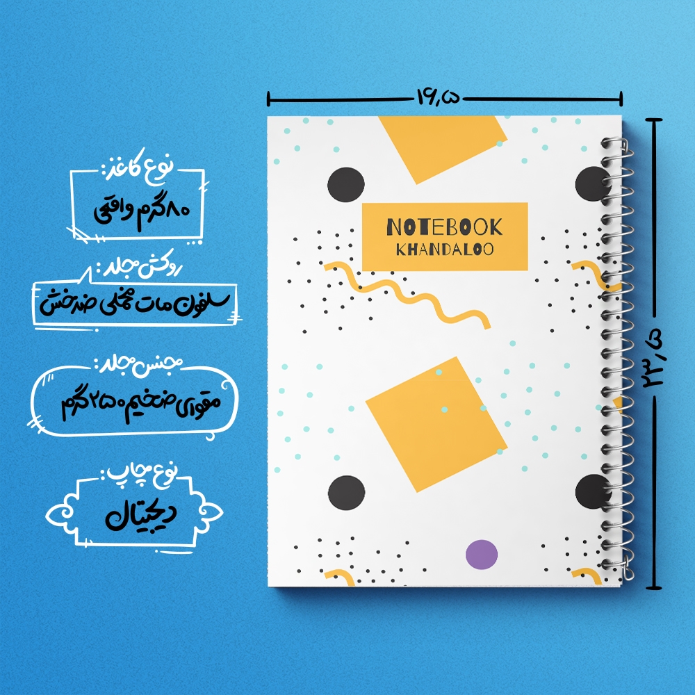 برند خندالو در زمینه تولید انواع دفاتر فانتزی و تحصیلی فعالیت میکند که به دلیل جذابیت ظاهری و طرح های متنوع طرفداران زیادی دارد. دفتر مشق خندالو محصولی مناسب برای استفاده به عنوان دفتر ریاضی، فیزیک، شیمی و جزوات دروس دانشجویان رشته های مختلف است.