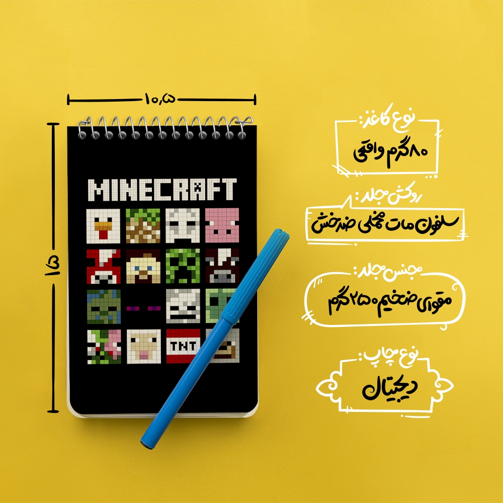 برند خندالو در زمینه تولید انواع دفاتر فانتزی و تحصیلی فعالیت میکند که به دلیل جذابیت ظاهری و طرح های متنوع طرفداران زیادی دارد. دفتر یادداشت خندالو طرح ماینکرافت (Minecraft) محصولی مناسب برای همه عاشقان لوازم التحریر است و همچنین همه کسانی که بنا به موقعیت تحصیل یا شغلشان با دفتر و نوشت افزار زیاد سر و کار دارند. در تولید دفتر یادداشت خندالو طرح ماینکرافت (Minecraft) از نوع صحافی فنر مارپیچ استفاده شده که در این نوع صحافی برگه‌ها به راحتی چرخیده و یا بیرون آورده می شوند.