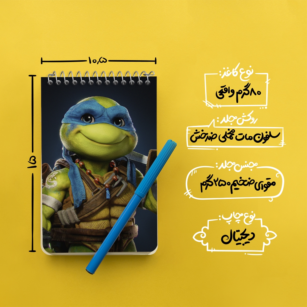 برند خندالو در زمینه تولید انواع دفاتر فانتزی و تحصیلی فعالیت میکند که به دلیل جذابیت ظاهری و طرح های متنوع طرفداران زیادی دارد. دفتر یادداشت خندالو طرح لاکپشت های نینجا محصولی مناسب برای همه عاشقان لوازم التحریر است و همچنین همه کسانی که بنا به موقعیت تحصیل یا شغلشان با دفتر و نوشت افزار زیاد سر و کار دارند. در تولید دفتر یادداشت خندالو طرح لاکپشت های نینجا از نوع صحافی فنر مارپیچ استفاده شده که در این نوع صحافی برگه‌ها به راحتی چرخیده و یا بیرون آورده می شوند.