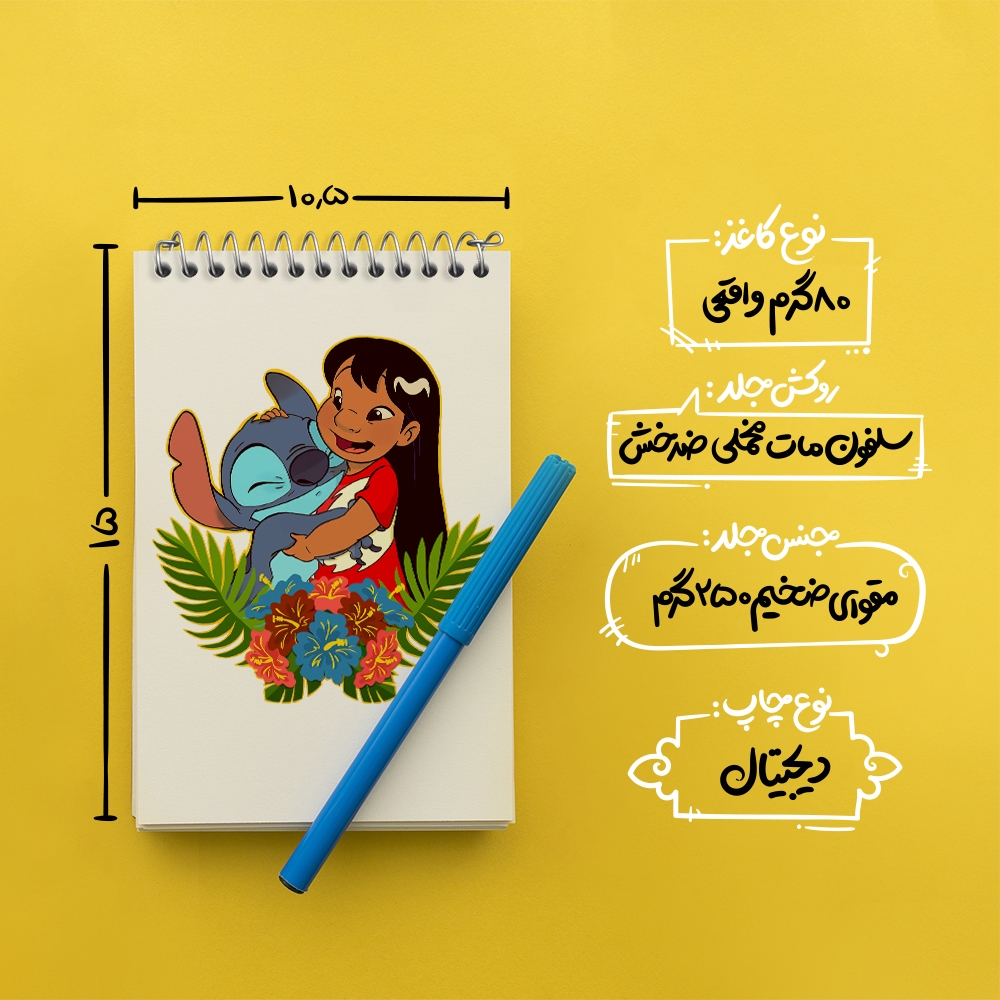 برند خندالو در زمینه تولید انواع دفاتر فانتزی و تحصیلی فعالیت میکند که به دلیل جذابیت ظاهری و طرح های متنوع طرفداران زیادی دارد. دفتر یادداشت خندالو طرح لیلو و استیچ محصولی مناسب برای همه عاشقان لوازم التحریر است و همچنین همه کسانی که بنا به موقعیت تحصیل یا شغلشان با دفتر و نوشت افزار زیاد سر و کار دارند. در تولید دفتر یادداشت خندالو طرح لیلو و استیچ از نوع صحافی فنر مارپیچ استفاده شده که در این نوع صحافی برگهها به راحتی چرخیده و یا بیرون آورده می شوند. دفتر های خندالو دارای جلد انعطاف پذیر از جنس مقوای گلاسه 250 گرم با روکش سلفون مات مخملی است که به شما امکان میدهد از دفتر خود بدون اینکه نگرانی از شکستن یا خراب شدن جلد را داشته باشید استفاده کنید و همچنین در این دفاتر از کاغذ 80 گرم با کیفیت استفاده شده که باعث میشود هنگام نوشتن به خوبی جوهر قلم بر روی صفحه نشسته و از خط خوردگیها جلوگیری کند. دفتر یادداشت خندالو با جنس و دوام مناسب، برگه های کاملاً سفید و خطوط طوسی دقیق را داراست که انسان را به نوشتن منظم و زیبا ترغیب میکند. طراحی کاملاً مناسب این دفاتر، به همراه کیفیت بالا، از آن یک محصول مورد علاقه و قابل اعتماد برای همه مقاطع تحصیلی میسازد. دفتر یادداشت خندالو طرح لیلو و استیچ انتخابی هوشمندانه و مناسب برای افرادی است که به دنبال دفتری با کیفیت و کاربرد عالی هستند. این دفتر، همراه خوبی برای شما در تمام مراحل تحصیل و کار خواهد بود و تجربهای لذتبخش از نوشتن و آموختن را به شما هدیه میدهد.