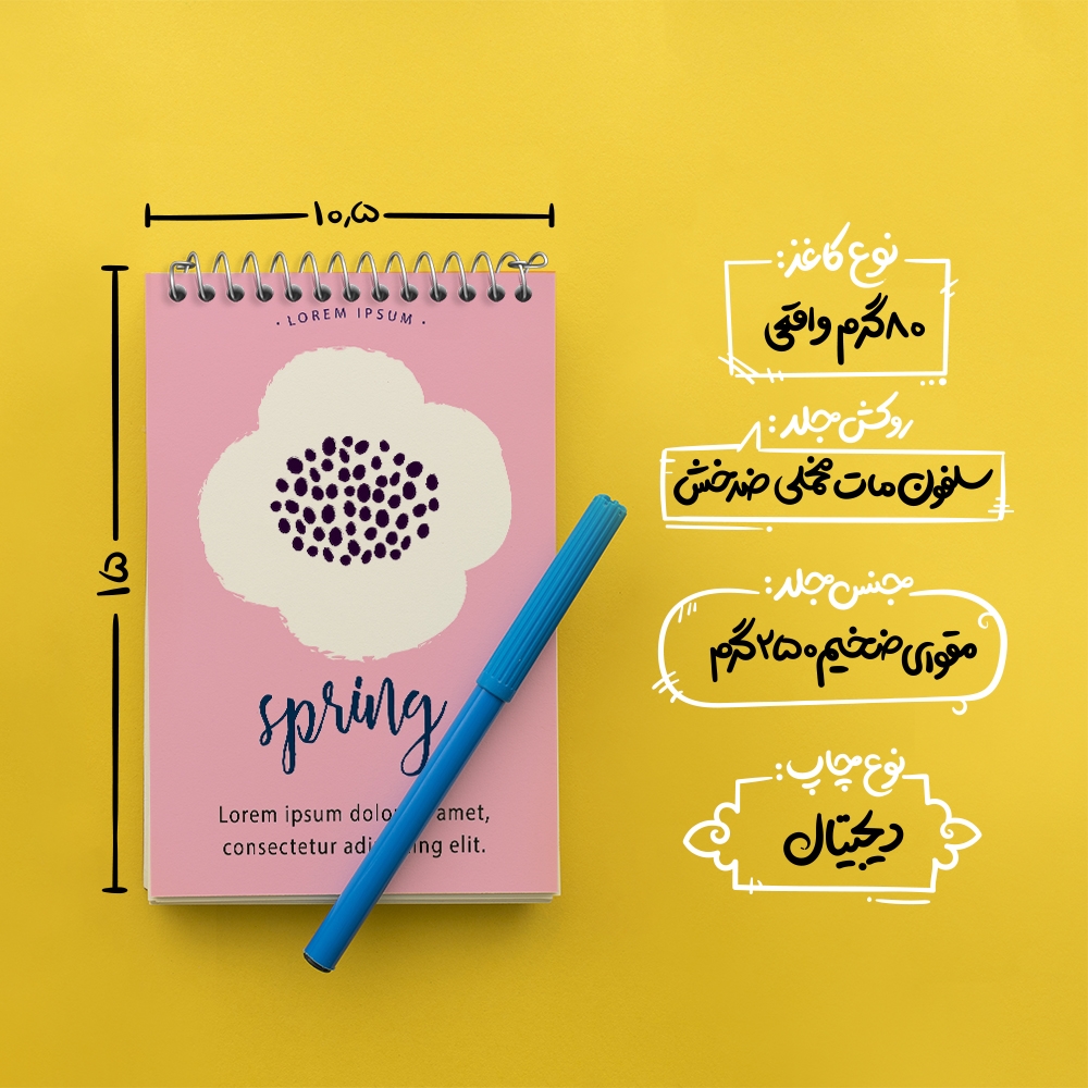 برند خندالو در زمینه تولید انواع دفاتر فانتزی و تحصیلی فعالیت میکند که به دلیل جذابیت ظاهری و طرح های متنوع طرفداران زیادی دارد. دفتر یادداشت خندالو طرح مینیمال بهار محصولی مناسب برای همه عاشقان لوازم التحریر است و همچنین همه کسانی که بنا به موقعیت تحصیل یا شغلشان با دفتر و نوشت افزار زیاد سر و کار دارند. در تولید دفتر یادداشت خندالو طرح مینیمال بهار از نوع صحافی فنر مارپیچ استفاده شده که در این نوع صحافی برگهها به راحتی چرخیده و یا بیرون آورده می شوند. دفتر های خندالو دارای جلد انعطاف پذیر از جنس مقوای گلاسه 250 گرم با روکش سلفون مات مخملی است که به شما امکان میدهد از دفتر خود بدون اینکه نگرانی از شکستن یا خراب شدن جلد را داشته باشید استفاده کنید و همچنین در این دفاتر از کاغذ 80 گرم با کیفیت استفاده شده که باعث میشود هنگام نوشتن به خوبی جوهر قلم بر روی صفحه نشسته و از خط خوردگیها جلوگیری کند. دفتر یادداشت خندالو با جنس و دوام مناسب، برگه های کاملاً سفید و خطوط طوسی دقیق را داراست که انسان را به نوشتن منظم و زیبا ترغیب میکند. طراحی کاملاً مناسب این دفاتر، به همراه کیفیت بالا، از آن یک محصول مورد علاقه و قابل اعتماد برای همه مقاطع تحصیلی میسازد. دفتر یادداشت خندالو طرح مینیمال بهار انتخابی هوشمندانه و مناسب برای افرادی است که به دنبال دفتری با کیفیت و کاربرد عالی هستند. این دفتر، همراه خوبی برای شما در تمام مراحل تحصیل و کار خواهد بود و تجربهای لذتبخش از نوشتن و آموختن را به شما هدیه میدهد.