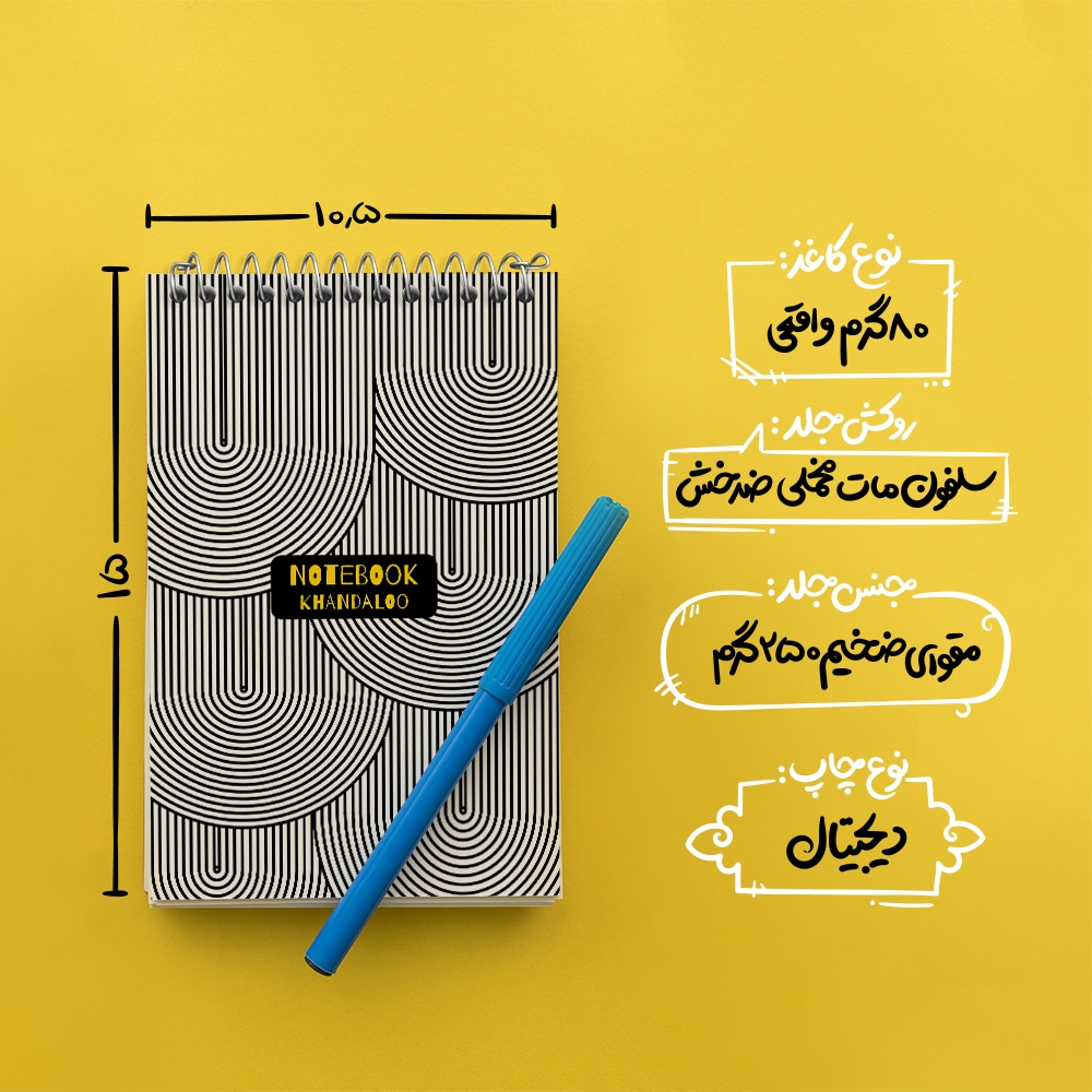 برند خندالو در زمینه تولید انواع دفاتر فانتزی و تحصیلی فعالیت میکند که به دلیل جذابیت ظاهری و طرح های متنوع طرفداران زیادی دارد. دفتر یادداشت خندالو طرح مدرن محصولی مناسب برای همه عاشقان لوازم التحریر است و همچنین همه کسانی که بنا به موقعیت تحصیل یا شغلشان با دفتر و نوشت افزار زیاد سر و کار دارند. در تولید دفتر یادداشت خندالو طرح مدرن از نوع صحافی فنر مارپیچ استفاده شده که در این نوع صحافی برگهها به راحتی چرخیده و یا بیرون آورده می شوند. دفتر های خندالو دارای جلد انعطاف پذیر از جنس مقوای گلاسه 250 گرم با روکش سلفون مات مخملی است که به شما امکان میدهد از دفتر خود بدون اینکه نگرانی از شکستن یا خراب شدن جلد را داشته باشید استفاده کنید و همچنین در این دفاتر از کاغذ 80 گرم با کیفیت استفاده شده که باعث میشود هنگام نوشتن به خوبی جوهر قلم بر روی صفحه نشسته و از خط خوردگیها جلوگیری کند. دفتر یادداشت خندالو با جنس و دوام مناسب، برگه های کاملاً سفید و خطوط طوسی دقیق را داراست که انسان را به نوشتن منظم و زیبا ترغیب میکند. طراحی کاملاً مناسب این دفاتر، به همراه کیفیت بالا، از آن یک محصول مورد علاقه و قابل اعتماد برای همه مقاطع تحصیلی میسازد. دفتر یادداشت خندالو طرح مدرن انتخابی هوشمندانه و مناسب برای افرادی است که به دنبال دفتری با کیفیت و کاربرد عالی هستند. این دفتر، همراه خوبی برای شما در تمام مراحل تحصیل و کار خواهد بود و تجربهای لذتبخش از نوشتن و آموختن را به شما هدیه میدهد.