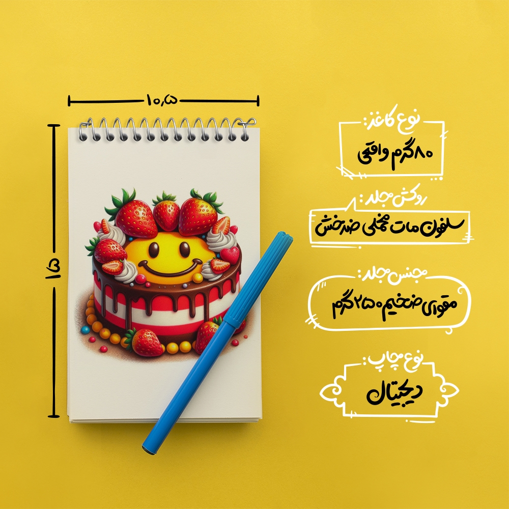 برند خندالو در زمینه تولید انواع دفاتر فانتزی و تحصیلی فعالیت میکند که به دلیل جذابیت ظاهری و طرح های متنوع طرفداران زیادی دارد. دفتر یادداشت خندالو طرح کیک کیوت محصولی مناسب برای همه عاشقان لوازم التحریر است و همچنین همه کسانی که بنا به موقعیت تحصیل یا شغلشان با دفتر و نوشت افزار زیاد سر و کار دارند. در تولید دفتر یادداشت خندالو طرح کیک کیوت از نوع صحافی فنر مارپیچ استفاده شده که در این نوع صحافی برگهها به راحتی چرخیده و یا بیرون آورده می شوند. دفتر های خندالو دارای جلد انعطاف پذیر از جنس مقوای گلاسه 250 گرم با روکش سلفون مات مخملی است که به شما امکان میدهد از دفتر خود بدون اینکه نگرانی از شکستن یا خراب شدن جلد را داشته باشید استفاده کنید و همچنین در این دفاتر از کاغذ 80 گرم با کیفیت استفاده شده که باعث میشود هنگام نوشتن به خوبی جوهر قلم بر روی صفحه نشسته و از خط خوردگیها جلوگیری کند. دفتر یادداشت خندالو با جنس و دوام مناسب، برگه های کاملاً سفید و خطوط طوسی دقیق را داراست که انسان را به نوشتن منظم و زیبا ترغیب میکند. طراحی کاملاً مناسب این دفاتر، به همراه کیفیت بالا، از آن یک محصول مورد علاقه و قابل اعتماد برای همه مقاطع تحصیلی میسازد. دفتر یادداشت خندالو طرح کیک کیوت انتخابی هوشمندانه و مناسب برای افرادی است که به دنبال دفتری با کیفیت و کاربرد عالی هستند. این دفتر، همراه خوبی برای شما در تمام مراحل تحصیل و کار خواهد بود و تجربهای لذتبخش از نوشتن و آموختن را به شما هدیه میدهد.