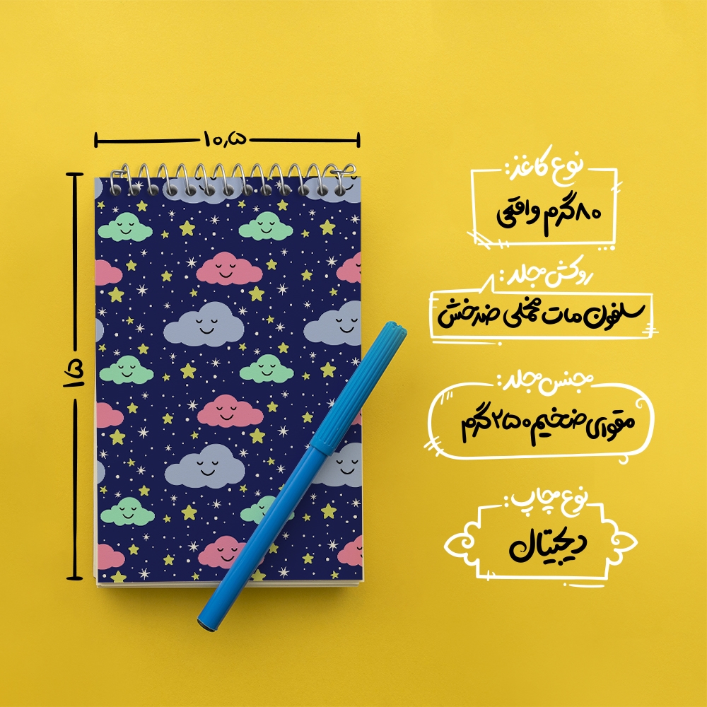 برند خندالو در زمینه تولید انواع دفاتر فانتزی و تحصیلی فعالیت میکند که به دلیل جذابیت ظاهری و طرح های متنوع طرفداران زیادی دارد. دفتر یادداشت خندالو طرح پترن ابر محصولی مناسب برای همه عاشقان لوازم التحریر است و همچنین همه کسانی که بنا به موقعیت تحصیل یا شغلشان با دفتر و نوشت افزار زیاد سر و کار دارند. در تولید دفتر یادداشت خندالو طرح پترن ابر از نوع صحافی فنر مارپیچ استفاده شده که در این نوع صحافی برگهها به راحتی چرخیده و یا بیرون آورده می شوند. دفتر های خندالو دارای جلد انعطاف پذیر از جنس مقوای گلاسه 250 گرم با روکش سلفون مات مخملی است که به شما امکان میدهد از دفتر خود بدون اینکه نگرانی از شکستن یا خراب شدن جلد را داشته باشید استفاده کنید و همچنین در این دفاتر از کاغذ 80 گرم با کیفیت استفاده شده که باعث میشود هنگام نوشتن به خوبی جوهر قلم بر روی صفحه نشسته و از خط خوردگیها جلوگیری کند. دفتر یادداشت خندالو با جنس و دوام مناسب، برگه های کاملاً سفید و خطوط طوسی دقیق را داراست که انسان را به نوشتن منظم و زیبا ترغیب میکند. طراحی کاملاً مناسب این دفاتر، به همراه کیفیت بالا، از آن یک محصول مورد علاقه و قابل اعتماد برای همه مقاطع تحصیلی میسازد. دفتر یادداشت خندالو طرح پترن ابر انتخابی هوشمندانه و مناسب برای افرادی است که به دنبال دفتری با کیفیت و کاربرد عالی هستند. این دفتر، همراه خوبی برای شما در تمام مراحل تحصیل و کار خواهد بود و تجربهای لذتبخش از نوشتن و آموختن را به شما هدیه میدهد.
