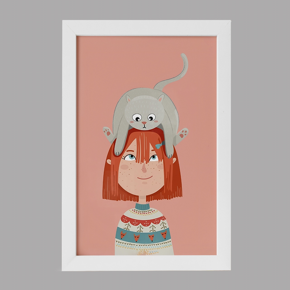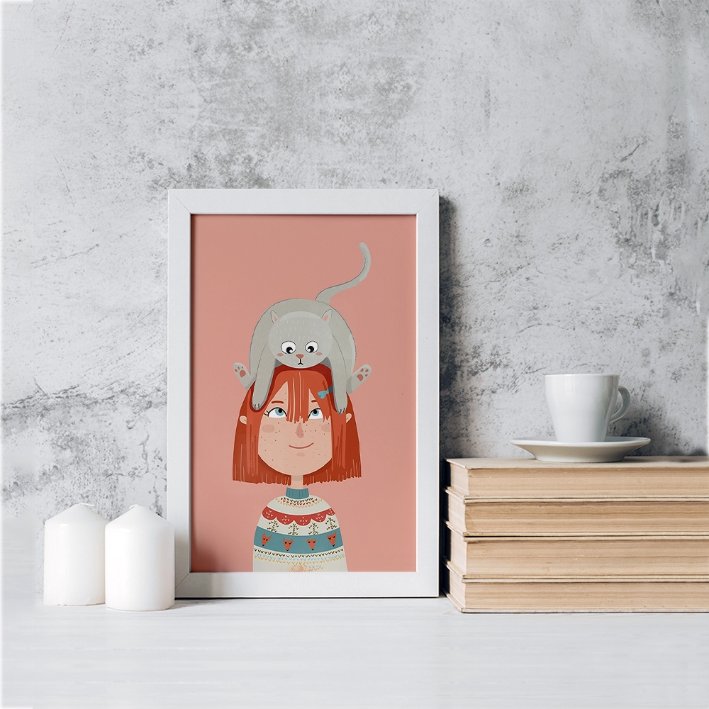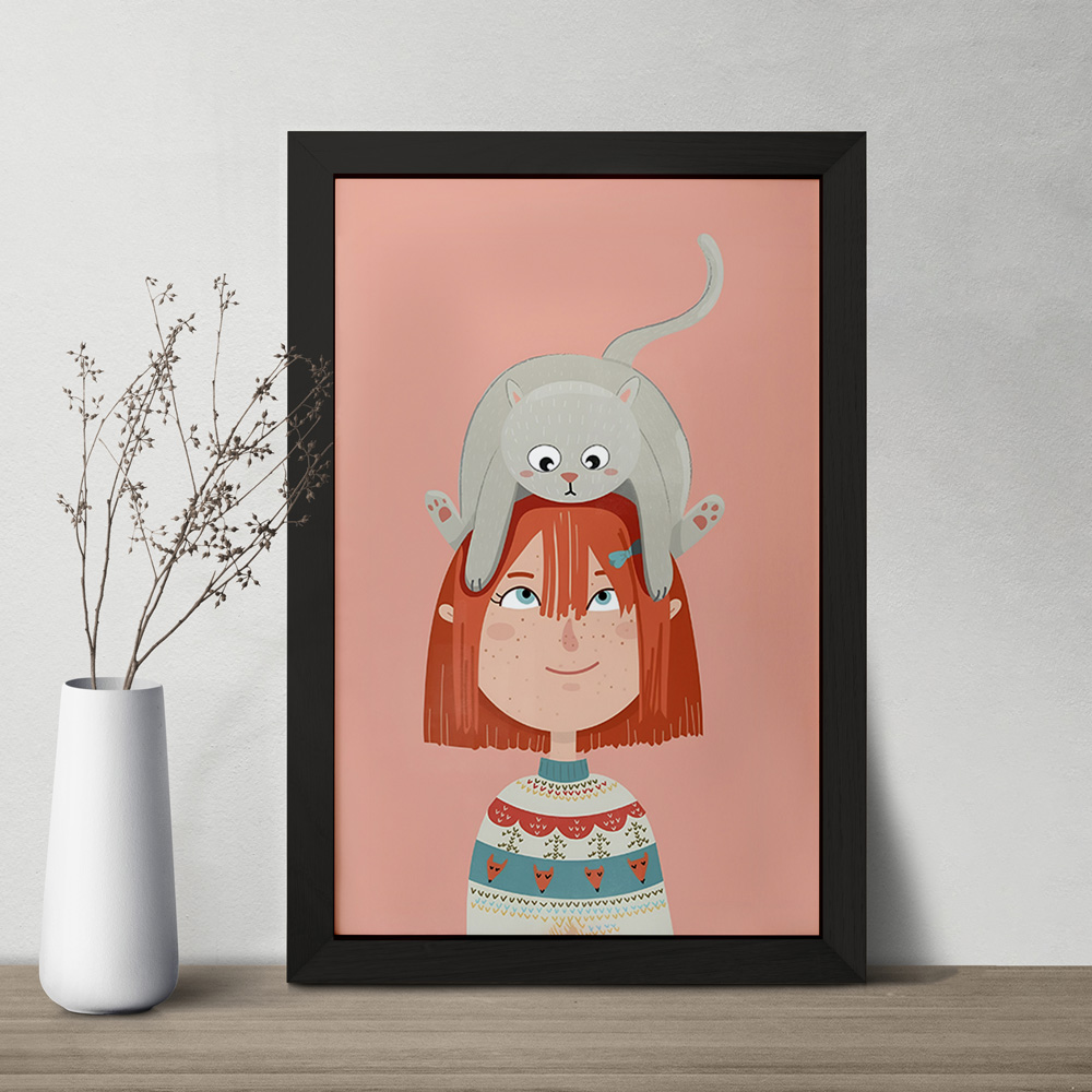 تابلو دختر و گربه
