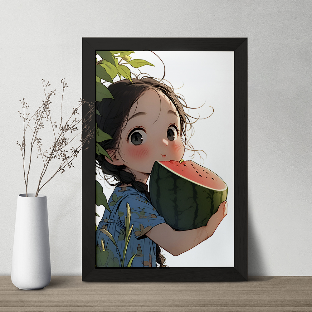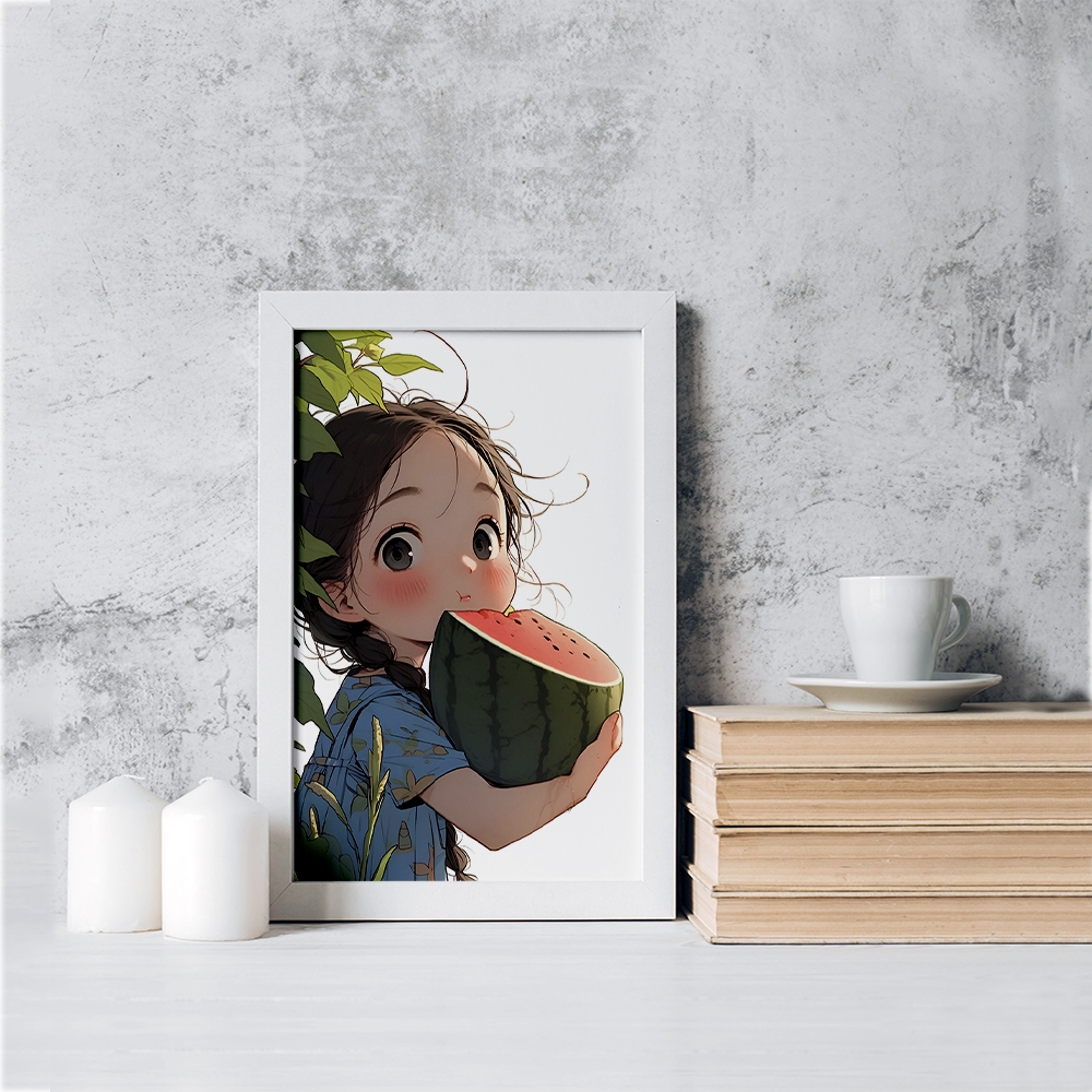 تابلو یا قاب عکس دختر و هندوانه خندالو در ابعاد مختلف با استفاده از بهترین برند پروفیل پی وی سی دو سانتی متری بسیار مرغوب، تولید شده اند و در مونتاژ و نصب آنها نهایت دقت در قرارگیری هر چه دقیق تر لبه ها به یکدیگر صورت گرفته است. همچنین در پشت قاب ها گیره ای برای اتصال راحت به دیوار تعبیه شده است.