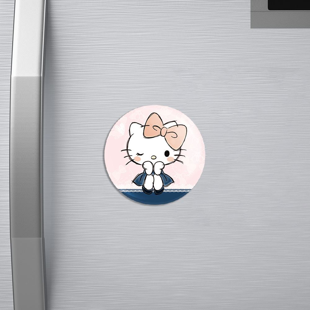مگنت هلو کیتی Hello Kitty خندالو با روکش سلفون مات مخملی ضدخش و قطعه پشتی فلزی تولید شده است که آهنربای اتمی بکار برده شده در محصول، بصورت مخفی تعبیه شده ودیده نمی شود. ضمن اینکه گیرایی بسیار بالایی داشته و به هیچ عنوان از روی یخچال نمی افتد.