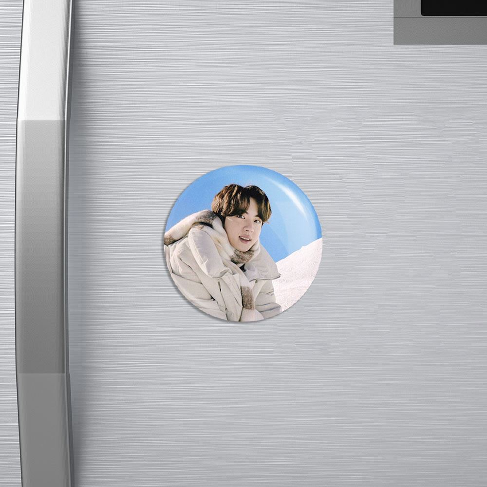 مگنت جین Jin گروه بی تی اس BTS خندالو با روکش سلفون مات مخملی ضدخش و قطعه پشتی فلزی تولید شده است که آهنربای اتمی بکار برده شده در محصول، بصورت مخفی تعبیه شده ودیده نمی شود. ضمن اینکه گیرایی بسیار بالایی داشته و به هیچ عنوان از روی یخچال نمی افتد.
