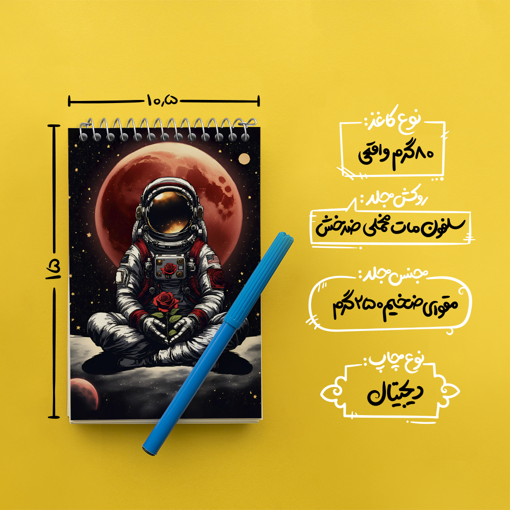 برند خندالو در زمینه تولید انواع دفاتر فانتزی و تحصیلی فعالیت میکند که به دلیل جذابیت ظاهری و طرح های متنوع طرفداران زیادی دارد. دفتر یادداشت خندالو طرح فضانورد محصولی مناسب برای همه عاشقان لوازم التحریر است و همچنین همه کسانی که بنا به موقعیت تحصیل یا شغلشان با دفتر و نوشت افزار زیاد سر و کار دارند. در تولید دفتر یادداشت خندالو طرح فضانورد از نوع صحافی فنر مارپیچ استفاده شده که در این نوع صحافی برگهها به راحتی چرخیده و یا بیرون آورده می شوند. دفتر های خندالو دارای جلد انعطاف پذیر از جنس مقوای گلاسه 250 گرم با روکش سلفون مات مخملی است که به شما امکان میدهد از دفتر خود بدون اینکه نگرانی از شکستن یا خراب شدن جلد را داشته باشید استفاده کنید و همچنین در این دفاتر از کاغذ 80 گرم با کیفیت استفاده شده که باعث میشود هنگام نوشتن به خوبی جوهر قلم بر روی صفحه نشسته و از خط خوردگیها جلوگیری کند. دفتر یادداشت خندالو با جنس و دوام مناسب، برگه های کاملاً سفید و خطوط طوسی دقیق را داراست که انسان را به نوشتن منظم و زیبا ترغیب میکند. طراحی کاملاً مناسب این دفاتر، به همراه کیفیت بالا، از آن یک محصول مورد علاقه و قابل اعتماد برای همه مقاطع تحصیلی میسازد. دفتر یادداشت خندالو طرح فضانورد انتخابی هوشمندانه و مناسب برای افرادی است که به دنبال دفتری با کیفیت و کاربرد عالی هستند. این دفتر، همراه خوبی برای شما در تمام مراحل تحصیل و کار خواهد بود و تجربهای لذتبخش از نوشتن و آموختن را به شما هدیه میدهد.