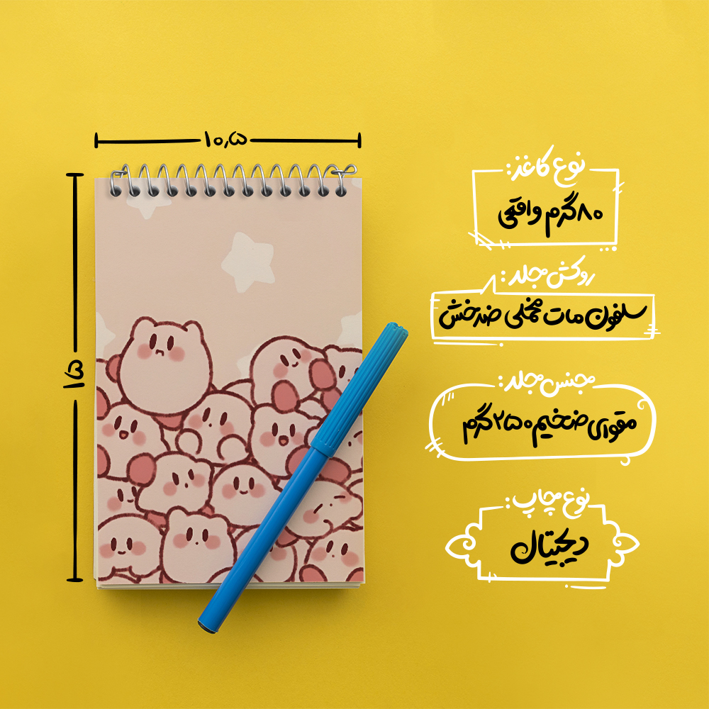 برند خندالو در زمینه تولید انواع دفاتر فانتزی و تحصیلی فعالیت میکند که به دلیل جذابیت ظاهری و طرح های متنوع طرفداران زیادی دارد. دفتر یادداشت خندالو طرح کربی (Kirby) محصولی مناسب برای همه عاشقان لوازم التحریر است و همچنین همه کسانی که بنا به موقعیت تحصیل یا شغلشان با دفتر و نوشت افزار زیاد سر و کار دارند. در تولید دفتر یادداشت خندالو طرح کربی (Kirby) از نوع صحافی فنر مارپیچ استفاده شده که در این نوع صحافی برگهها به راحتی چرخیده و یا بیرون آورده می شوند. دفتر های خندالو دارای جلد انعطاف پذیر از جنس مقوای گلاسه 250 گرم با روکش سلفون مات مخملی است که به شما امکان میدهد از دفتر خود بدون اینکه نگرانی از شکستن یا خراب شدن جلد را داشته باشید استفاده کنید و همچنین در این دفاتر از کاغذ 80 گرم با کیفیت استفاده شده که باعث میشود هنگام نوشتن به خوبی جوهر قلم بر روی صفحه نشسته و از خط خوردگیها جلوگیری کند. دفتر یادداشت خندالو با جنس و دوام مناسب، برگه های کاملاً سفید و خطوط طوسی دقیق را داراست که انسان را به نوشتن منظم و زیبا ترغیب میکند. طراحی کاملاً مناسب این دفاتر، به همراه کیفیت بالا، از آن یک محصول مورد علاقه و قابل اعتماد برای همه مقاطع تحصیلی میسازد. دفتر یادداشت خندالو طرح کربی (Kirby) انتخابی هوشمندانه و مناسب برای افرادی است که به دنبال دفتری با کیفیت و کاربرد عالی هستند. این دفتر، همراه خوبی برای شما در تمام مراحل تحصیل و کار خواهد بود و تجربهای لذتبخش از نوشتن و آموختن را به شما هدیه میدهد.