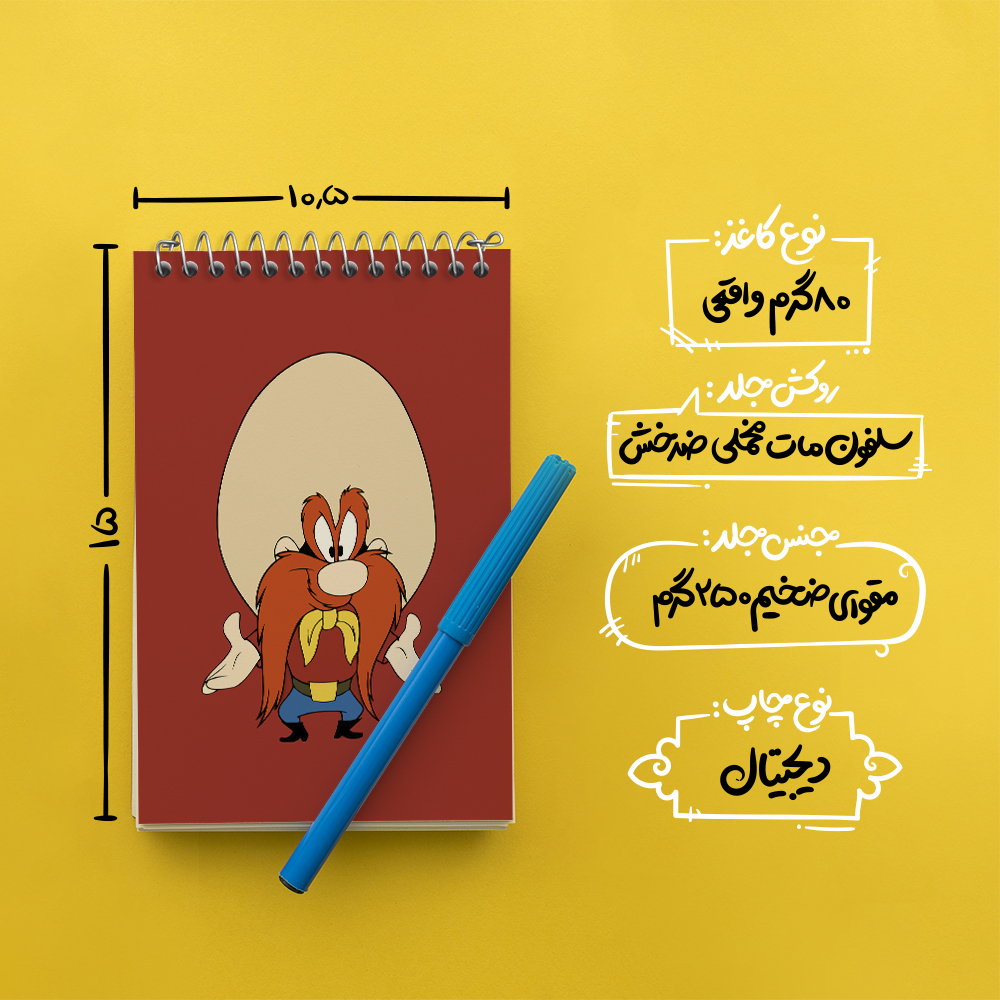 برند خندالو در زمینه تولید انواع دفاتر فانتزی و تحصیلی فعالیت میکند که به دلیل جذابیت ظاهری و طرح های متنوع طرفداران زیادی دارد. دفتر یادداشت خندالو طرح یوسمیتی سام (Yosemite Sam) محصولی مناسب برای همه عاشقان لوازم التحریر است و همچنین همه کسانی که بنا به موقعیت تحصیل یا شغلشان با دفتر و نوشت افزار زیاد سر و کار دارند. در تولید دفتر یادداشت خندالو طرح یوسمیتی سام (Yosemite Sam) از نوع صحافی فنر مارپیچ استفاده شده که در این نوع صحافی برگهها به راحتی چرخیده و یا بیرون آورده می شوند. دفتر های خندالو دارای جلد انعطاف پذیر از جنس مقوای گلاسه 250 گرم با روکش سلفون مات مخملی است که به شما امکان میدهد از دفتر خود بدون اینکه نگرانی از شکستن یا خراب شدن جلد را داشته باشید استفاده کنید و همچنین در این دفاتر از کاغذ 80 گرم با کیفیت استفاده شده که باعث میشود هنگام نوشتن به خوبی جوهر قلم بر روی صفحه نشسته و از خط خوردگیها جلوگیری کند. دفتر یادداشت خندالو با جنس و دوام مناسب، برگه های کاملاً سفید و خطوط طوسی دقیق را داراست که انسان را به نوشتن منظم و زیبا ترغیب میکند. طراحی کاملاً مناسب این دفاتر، به همراه کیفیت بالا، از آن یک محصول مورد علاقه و قابل اعتماد برای همه مقاطع تحصیلی میسازد. دفتر یادداشت خندالو طرح یوسمیتی سام (Yosemite Sam) انتخابی هوشمندانه و مناسب برای افرادی است که به دنبال دفتری با کیفیت و کاربرد عالی هستند. این دفتر، همراه خوبی برای شما در تمام مراحل تحصیل و کار خواهد بود و تجربهای لذتبخش از نوشتن و آموختن را به شما هدیه میدهد.