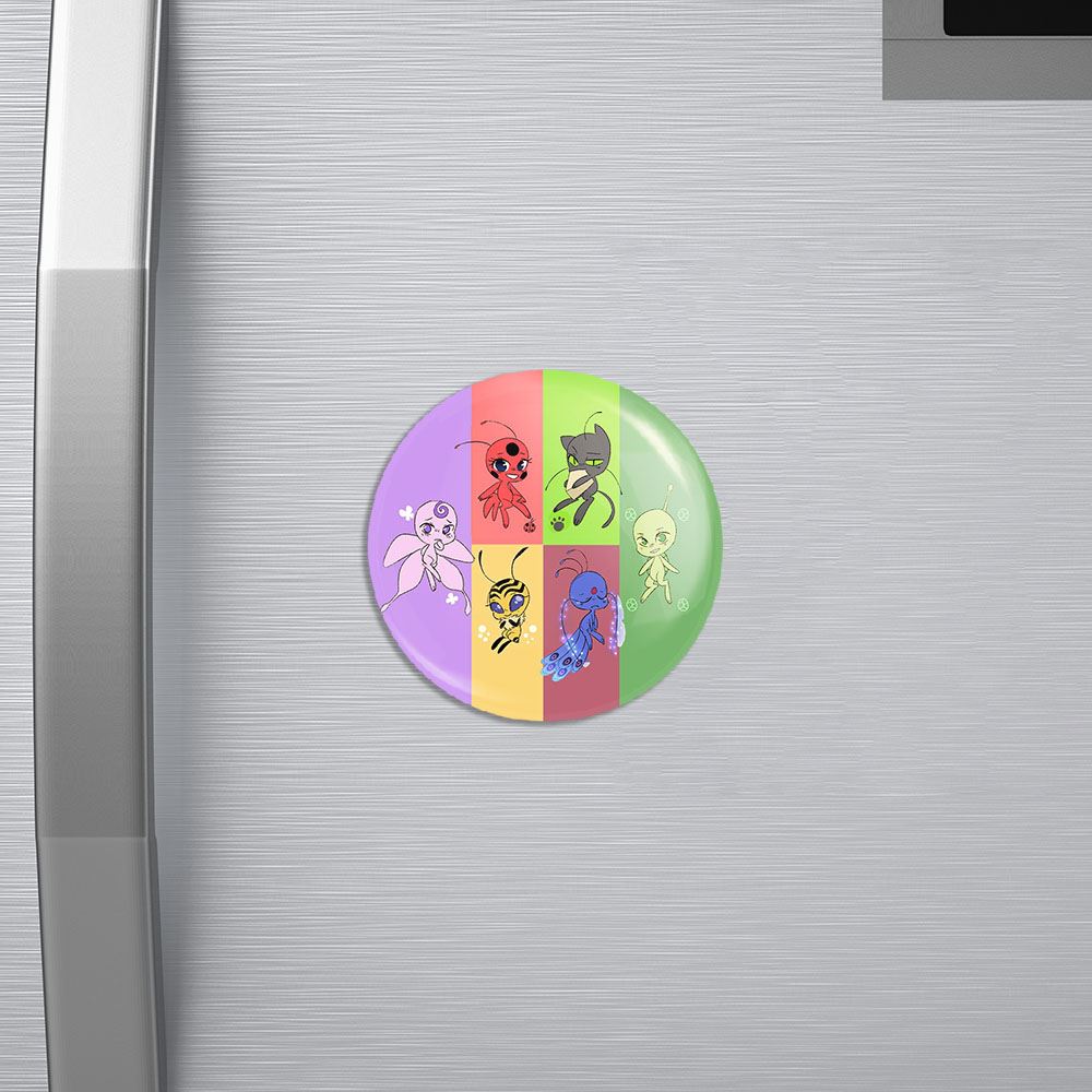 مگنت دختر کفشدوزکی خندالو با روکش سلفون مات مخملی ضدخش و قطعه پشتی فلزی تولید شده است که آهنربای اتمی بکار برده شده در محصول، بصورت مخفی تعبیه شده ودیده نمی شود. ضمن اینکه گیرایی بسیار بالایی داشته و به هیچ عنوان از روی یخچال نمی افتد.