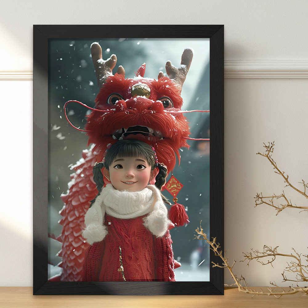 تابلو یا قاب عکس دختر و اژدها خندالو در ابعاد مختلف با استفاده از بهترین برند پروفیل پی وی سی دو سانتی متری بسیار مرغوب، تولید شده اند و در مونتاژ و نصب آنها نهایت دقت در قرارگیری هر چه دقیق تر لبه ها به یکدیگر صورت گرفته است. همچنین در پشت قاب ها گیره ای برای اتصال راحت به دیوار تعبیه شده است.