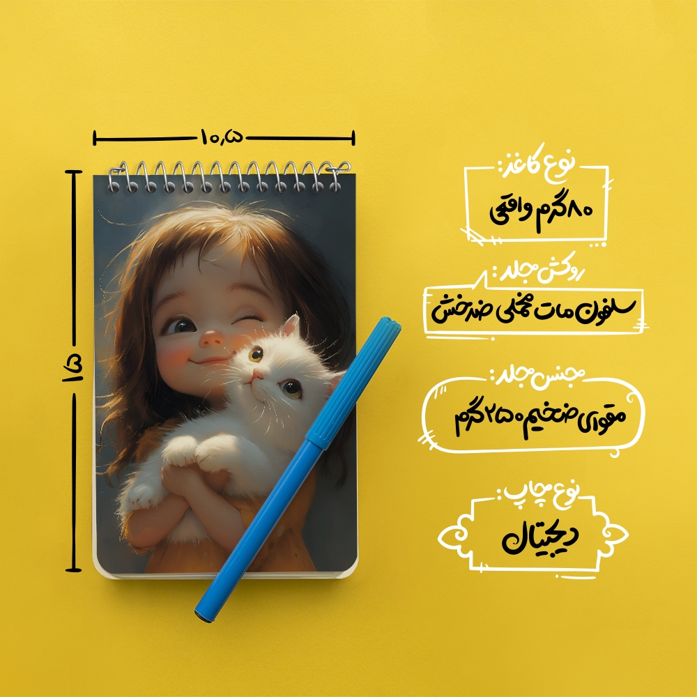 برند خندالو در زمینه تولید انواع دفاتر فانتزی و تحصیلی فعالیت میکند که به دلیل جذابیت ظاهری و طرح های متنوع طرفداران زیادی دارد. دفتر یادداشت خندالو طرح گربه و دختر کیوت محصولی مناسب برای همه عاشقان لوازم التحریر است و همچنین همه کسانی که بنا به موقعیت تحصیل یا شغلشان با دفتر و نوشت افزار زیاد سر و کار دارند. در تولید دفتر یادداشت خندالو طرح گربه و دختر کیوت از نوع صحافی فنر مارپیچ استفاده شده که در این نوع صحافی برگهها به راحتی چرخیده و یا بیرون آورده می شوند. دفتر های خندالو دارای جلد انعطاف پذیر از جنس مقوای گلاسه 250 گرم با روکش سلفون مات مخملی است که به شما امکان میدهد از دفتر خود بدون اینکه نگرانی از شکستن یا خراب شدن جلد را داشته باشید استفاده کنید و همچنین در این دفاتر از کاغذ 80 گرم با کیفیت استفاده شده که باعث میشود هنگام نوشتن به خوبی جوهر قلم بر روی صفحه نشسته و از خط خوردگیها جلوگیری کند. دفتر یادداشت خندالو با جنس و دوام مناسب، برگه های کاملاً سفید و خطوط طوسی دقیق را داراست که انسان را به نوشتن منظم و زیبا ترغیب میکند. طراحی کاملاً مناسب این دفاتر، به همراه کیفیت بالا، از آن یک محصول مورد علاقه و قابل اعتماد برای همه مقاطع تحصیلی میسازد. دفتر یادداشت خندالو طرح گربه و دختر کیوت انتخابی هوشمندانه و مناسب برای افرادی است که به دنبال دفتری با کیفیت و کاربرد عالی هستند. این دفتر، همراه خوبی برای شما در تمام مراحل تحصیل و کار خواهد بود و تجربهای لذتبخش از نوشتن و آموختن را به شما هدیه میدهد.