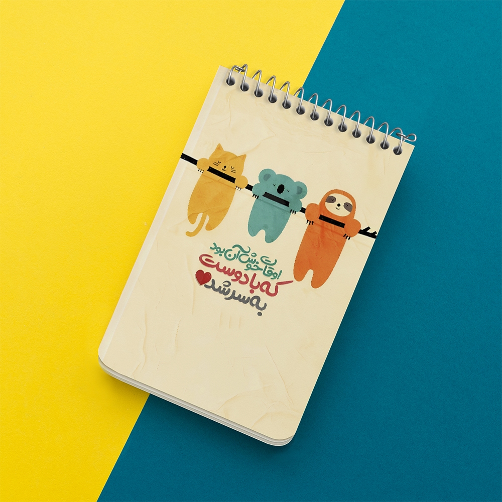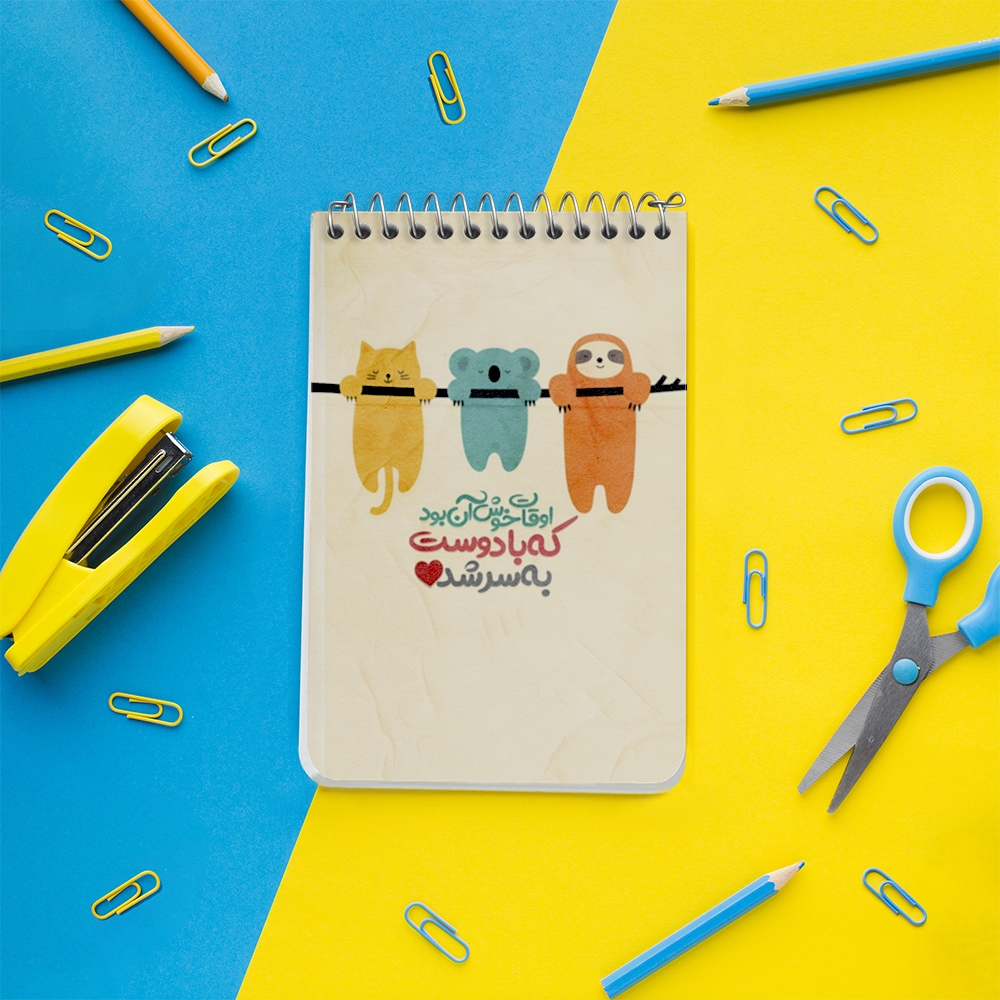 برند خندالو در زمینه تولید انواع دفاتر فانتزی و تحصیلی فعالیت میکند که به دلیل جذابیت ظاهری و طرح های متنوع طرفداران زیادی دارد. دفتر یادداشت خندالو طرح اوقات خوش آن بود که با دوست به سر شد محصولی مناسب برای همه عاشقان لوازم التحریر است و همچنین همه کسانی که بنا به موقعیت تحصیل یا شغلشان با دفتر و نوشت افزار زیاد سر و کار دارند. در تولید دفتر یادداشت خندالو طرح اوقات خوش آن بود که با دوست به سر شد از نوع صحافی فنر مارپیچ استفاده شده که در این نوع صحافی برگهها به راحتی چرخیده و یا بیرون آورده می شوند. دفتر های خندالو دارای جلد انعطاف پذیر از جنس مقوای گلاسه 250 گرم با روکش سلفون مات مخملی است که به شما امکان میدهد از دفتر خود بدون اینکه نگرانی از شکستن یا خراب شدن جلد را داشته باشید استفاده کنید و همچنین در این دفاتر از کاغذ 80 گرم با کیفیت استفاده شده که باعث میشود هنگام نوشتن به خوبی جوهر قلم بر روی صفحه نشسته و از خط خوردگیها جلوگیری کند. دفتر یادداشت خندالو با جنس و دوام مناسب، برگه های کاملاً سفید و خطوط طوسی دقیق را داراست که انسان را به نوشتن منظم و زیبا ترغیب میکند. طراحی کاملاً مناسب این دفاتر، به همراه کیفیت بالا، از آن یک محصول مورد علاقه و قابل اعتماد برای همه مقاطع تحصیلی میسازد. دفتر یادداشت خندالو طرح اوقات خوش آن بود که با دوست به سر شد انتخابی هوشمندانه و مناسب برای افرادی است که به دنبال دفتری با کیفیت و کاربرد عالی هستند. این دفتر، همراه خوبی برای شما در تمام مراحل تحصیل و کار خواهد بود و تجربهای لذتبخش از نوشتن و آموختن را به شما هدیه میدهد.