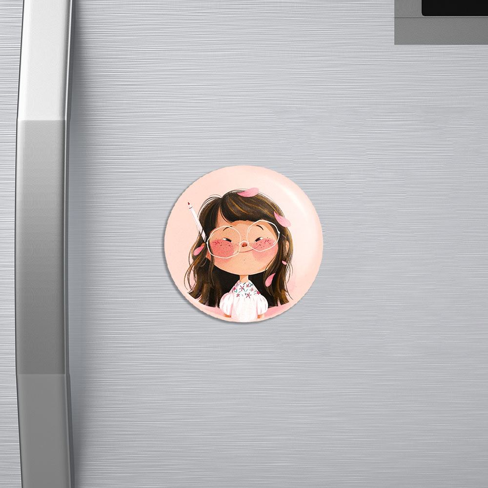 مگنت دخترانه فانتزی خندالو با روکش سلفون مات مخملی ضدخش و قطعه پشتی فلزی تولید شده است که آهنربای اتمی بکار برده شده در محصول، بصورت مخفی تعبیه شده ودیده نمی شود. ضمن اینکه گیرایی بسیار بالایی داشته و به هیچ عنوان از روی یخچال نمی افتد.