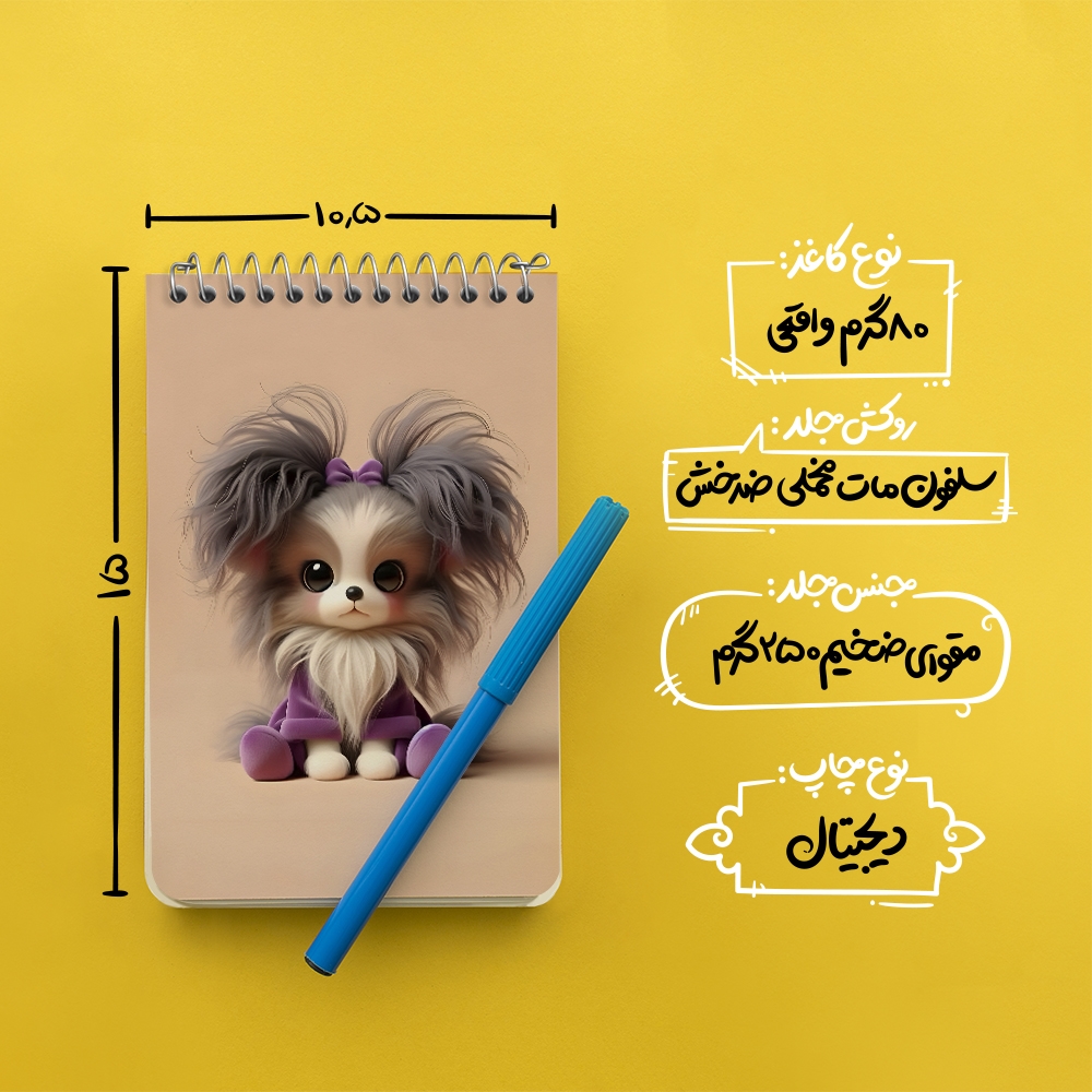 برند خندالو در زمینه تولید انواع دفاتر فانتزی و تحصیلی فعالیت میکند که به دلیل جذابیت ظاهری و طرح های متنوع طرفداران زیادی دارد. دفتر یادداشت خندالو طرح سگ کیوت محصولی مناسب برای همه عاشقان لوازم التحریر است و همچنین همه کسانی که بنا به موقعیت تحصیل یا شغلشان با دفتر و نوشت افزار زیاد سر و کار دارند. در تولید دفتر یادداشت خندالو طرح سگ کیوت از نوع صحافی فنر مارپیچ استفاده شده که در این نوع صحافی برگهها به راحتی چرخیده و یا بیرون آورده می شوند. دفتر های خندالو دارای جلد انعطاف پذیر از جنس مقوای گلاسه 250 گرم با روکش سلفون مات مخملی است که به شما امکان میدهد از دفتر خود بدون اینکه نگرانی از شکستن یا خراب شدن جلد را داشته باشید استفاده کنید و همچنین در این دفاتر از کاغذ 80 گرم با کیفیت استفاده شده که باعث میشود هنگام نوشتن به خوبی جوهر قلم بر روی صفحه نشسته و از خط خوردگیها جلوگیری کند. دفتر یادداشت خندالو با جنس و دوام مناسب، برگه های کاملاً سفید و خطوط طوسی دقیق را داراست که انسان را به نوشتن منظم و زیبا ترغیب میکند. طراحی کاملاً مناسب این دفاتر، به همراه کیفیت بالا، از آن یک محصول مورد علاقه و قابل اعتماد برای همه مقاطع تحصیلی میسازد. دفتر یادداشت خندالو طرح سگ کیوت انتخابی هوشمندانه و مناسب برای افرادی است که به دنبال دفتری با کیفیت و کاربرد عالی هستند. این دفتر، همراه خوبی برای شما در تمام مراحل تحصیل و کار خواهد بود و تجربهای لذتبخش از نوشتن و آموختن را به شما هدیه میدهد.