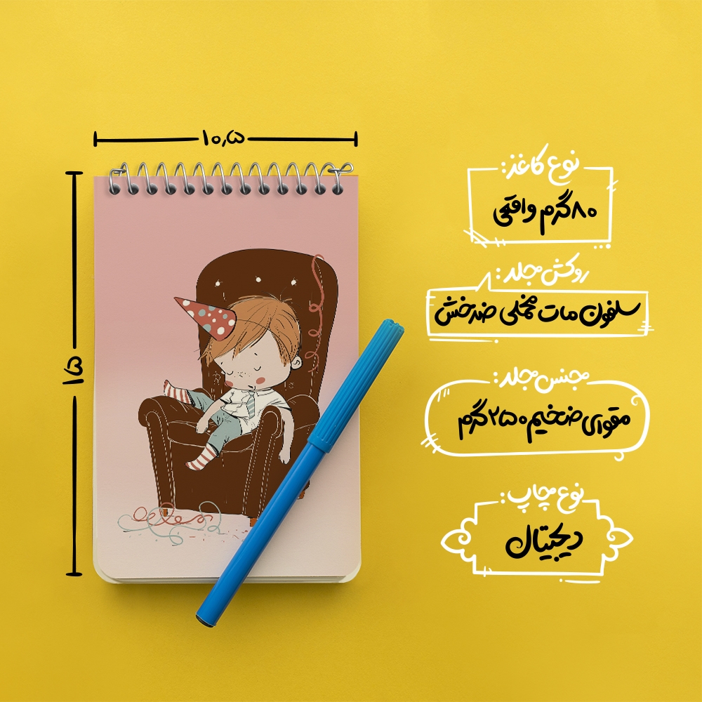 برند خندالو در زمینه تولید انواع دفاتر فانتزی و تحصیلی فعالیت میکند که به دلیل جذابیت ظاهری و طرح های متنوع طرفداران زیادی دارد. دفتر یادداشت خندالو طرح پسر خوابالو محصولی مناسب برای همه عاشقان لوازم التحریر است و همچنین همه کسانی که بنا به موقعیت تحصیل یا شغلشان با دفتر و نوشت افزار زیاد سر و کار دارند. در تولید دفتر یادداشت خندالو طرح پسر خوابالو از نوع صحافی فنر مارپیچ استفاده شده که در این نوع صحافی برگهها به راحتی چرخیده و یا بیرون آورده می شوند. دفتر های خندالو دارای جلد انعطاف پذیر از جنس مقوای گلاسه 250 گرم با روکش سلفون مات مخملی است که به شما امکان میدهد از دفتر خود بدون اینکه نگرانی از شکستن یا خراب شدن جلد را داشته باشید استفاده کنید و همچنین در این دفاتر از کاغذ 80 گرم با کیفیت استفاده شده که باعث میشود هنگام نوشتن به خوبی جوهر قلم بر روی صفحه نشسته و از خط خوردگیها جلوگیری کند. دفتر یادداشت خندالو با جنس و دوام مناسب، برگه های کاملاً سفید و خطوط طوسی دقیق را داراست که انسان را به نوشتن منظم و زیبا ترغیب میکند. طراحی کاملاً مناسب این دفاتر، به همراه کیفیت بالا، از آن یک محصول مورد علاقه و قابل اعتماد برای همه مقاطع تحصیلی میسازد. دفتر یادداشت خندالو طرح پسر خوابالو انتخابی هوشمندانه و مناسب برای افرادی است که به دنبال دفتری با کیفیت و کاربرد عالی هستند. این دفتر، همراه خوبی برای شما در تمام مراحل تحصیل و کار خواهد بود و تجربهای لذتبخش از نوشتن و آموختن را به شما هدیه میدهد.