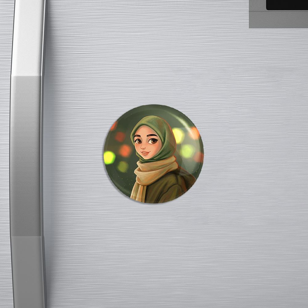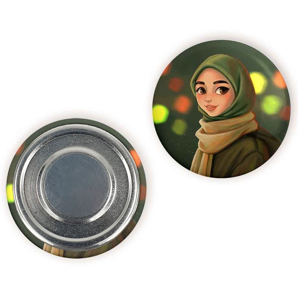 مگنت دخترانه باحجاب خندالو با روکش سلفون مات مخملی ضدخش و قطعه پشتی فلزی تولید شده است که آهنربای اتمی بکار برده شده در محصول، بصورت مخفی تعبیه شده ودیده نمی شود. ضمن اینکه گیرایی بسیار بالایی داشته و به هیچ عنوان از روی یخچال نمی افتد.