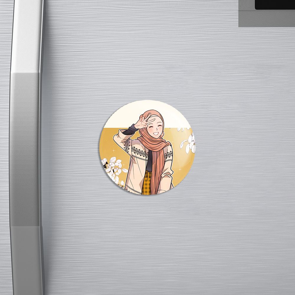 مگنت دخترانه باحجاب خندالو با روکش سلفون مات مخملی ضدخش و قطعه پشتی فلزی تولید شده است که آهنربای اتمی بکار برده شده در محصول، بصورت مخفی تعبیه شده ودیده نمی شود. ضمن اینکه گیرایی بسیار بالایی داشته و به هیچ عنوان از روی یخچال نمی افتد.