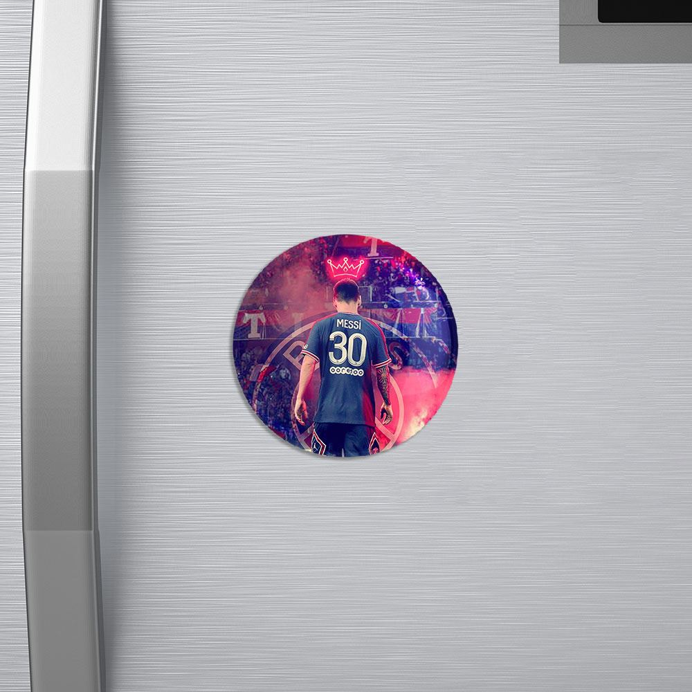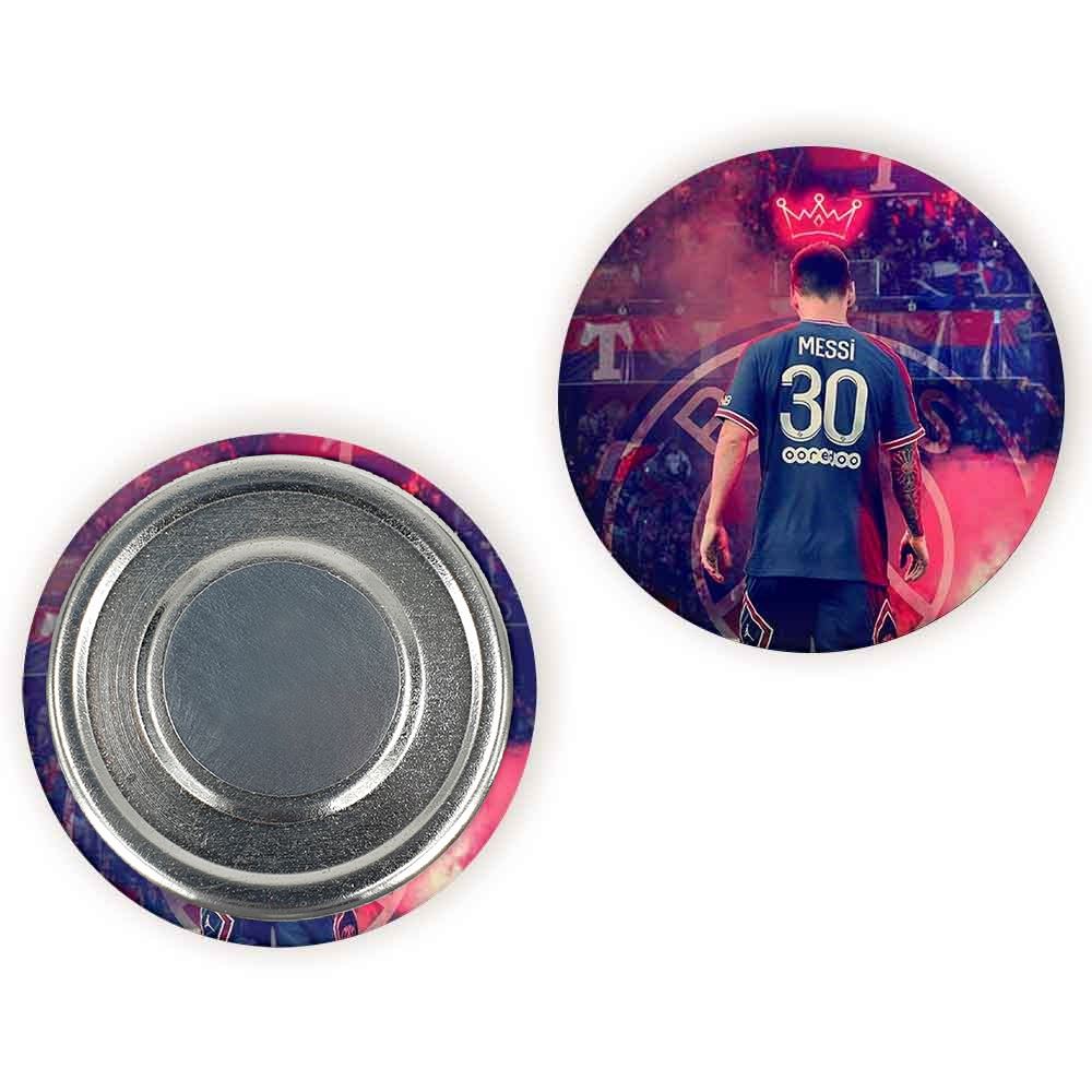 مگنت لیونل مسی خندالو با روکش سلفون مات مخملی ضدخش و قطعه پشتی فلزی تولید شده است که آهنربای اتمی بکار برده شده در محصول، بصورت مخفی تعبیه شده ودیده نمی شود. ضمن اینکه گیرایی بسیار بالایی داشته و به هیچ عنوان از روی یخچال نمی افتد.