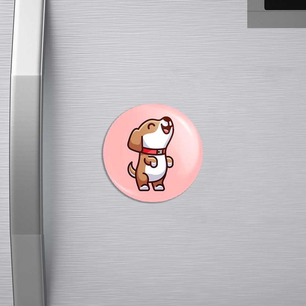 مگنت حیوانات بامزه سگ خندالو با روکش سلفون مات مخملی ضدخش و قطعه پشتی فلزی تولید شده است که آهنربای اتمی بکار برده شده در محصول، بصورت مخفی تعبیه شده ودیده نمی شود. ضمن اینکه گیرایی بسیار بالایی داشته و به هیچ عنوان از روی یخچال نمی افتد.