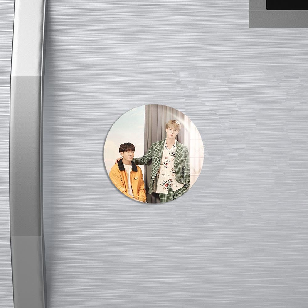 مگنت گروه بی تی اس BTS خندالو با روکش سلفون مات مخملی ضدخش و قطعه پشتی فلزی تولید شده است که آهنربای اتمی بکار برده شده در محصول، بصورت مخفی تعبیه شده ودیده نمی شود. ضمن اینکه گیرایی بسیار بالایی داشته و به هیچ عنوان از روی یخچال نمی افتد.